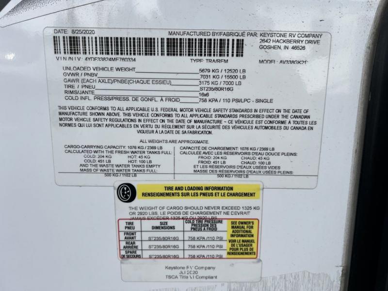 Used 2021 Keystone RV Avalanche 338GK Fifth Wheel