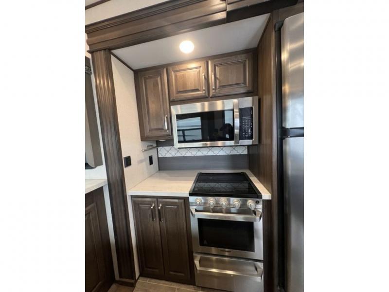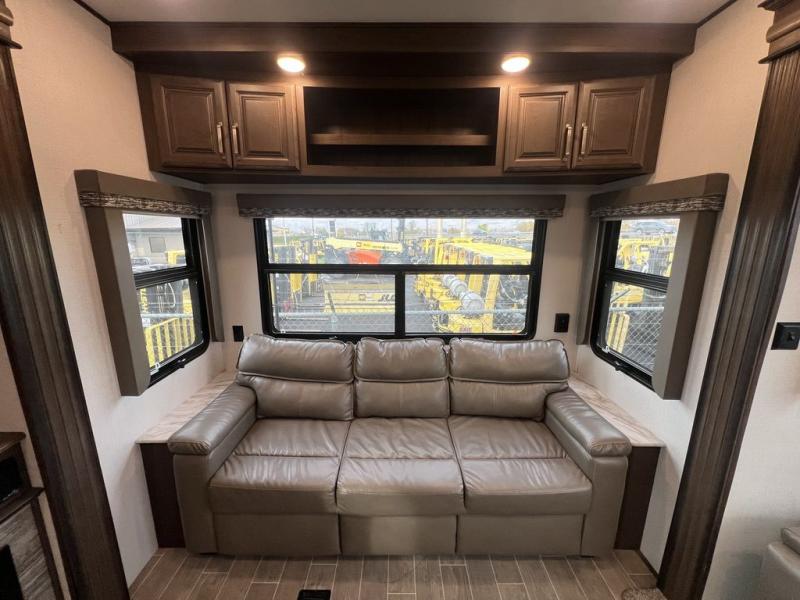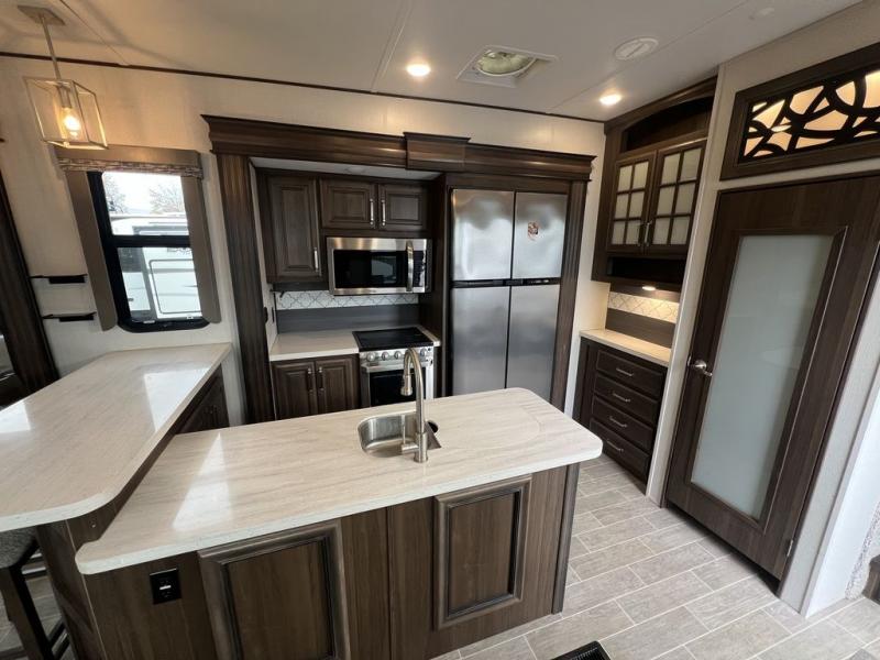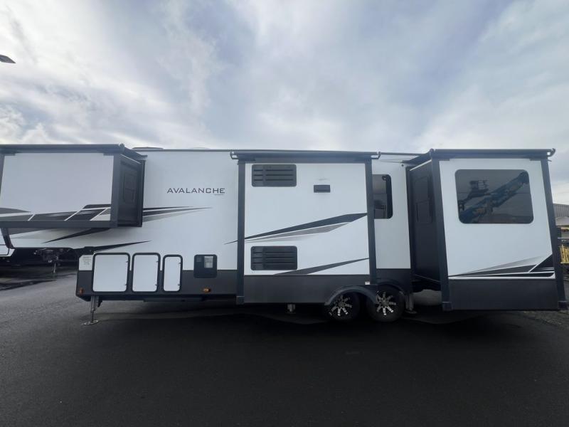 With any Keystone luxury full-profile Avalanche fifth wheel, you can experience wide-body construction that allows you to stretch out and stay awhile during any season thanks to the Polar Pack All Season Protection that includes a heated and enclosed underbelly, an Astro foil reflective layer on the roof, front and rear walls, and two static attic vents, plus more! The interior offers grained soft gray wood throughout and polished natural stone solid surface countertops, plus your choice of modern interior design. There are many more Keystone exclusives, plus standard and optional features that will allow you to choose the perfect RV for you!