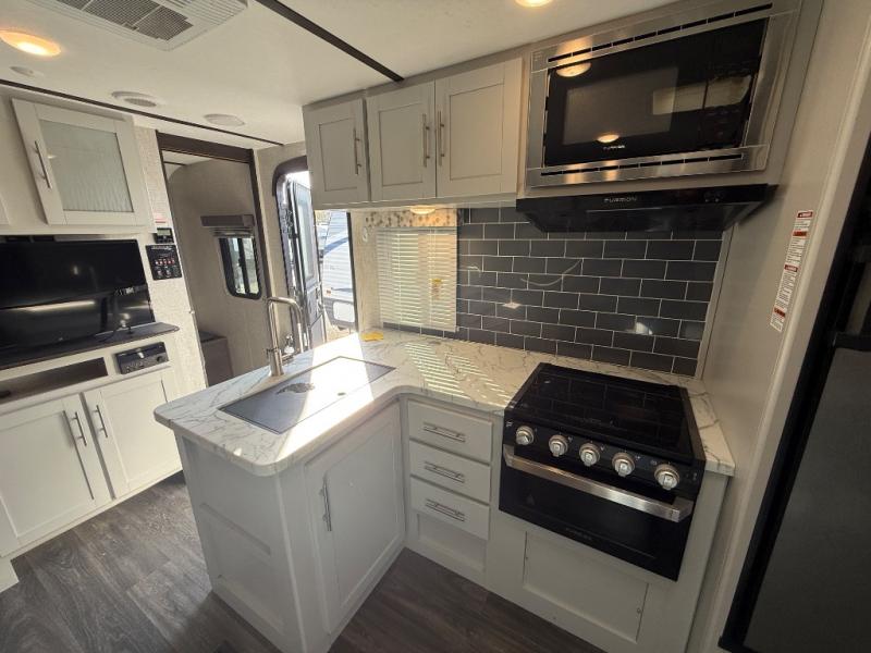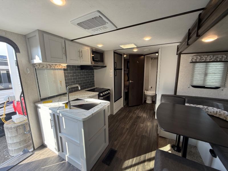 Each Keystone Bullet travel trailer is built with Hyper Deck flooring that provides a high-performance water-resistant RV floor that is more resilient, stronger, and lighter than traditional laminated wood construction, and color-coded unified wiring which is different from conventional RV wiring because it has easy-to-trace circuits and clearly labeled wiring. The in-floor heating ducts distribute heat the way it should be done, and the Tru-Fit slide construction on slide models minimizes structural stress and resists leaking. The interior will continue to impress you with the Coastal Cottage painted hardwood cabinet doors, the vaulted ceilings, and the LED reading lights above the bed to mention a few. Choose your favorite, and start camping in comfort at an affordable price without missing any of the impressive features you want!