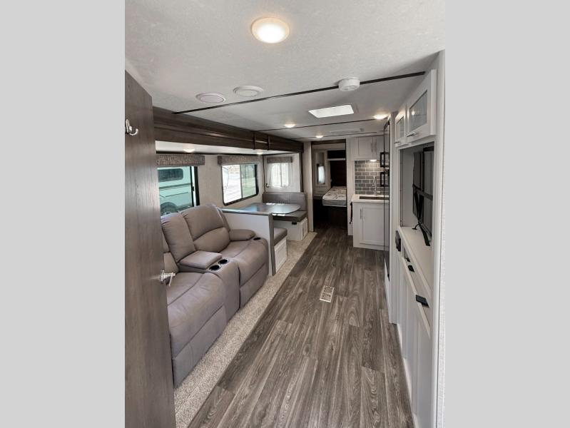 Each Keystone Bullet travel trailer is built with Hyper Deck flooring that provides a high-performance water-resistant RV floor that is more resilient, stronger, and lighter than traditional laminated wood construction, and color-coded unified wiring which is different from conventional RV wiring because it has easy-to-trace circuits and clearly labeled wiring. The in-floor heating ducts distribute heat the way it should be done, and the Tru-Fit slide construction on slide models minimizes structural stress and resists leaking. The interior will continue to impress you with the Coastal Cottage painted hardwood cabinet doors, the vaulted ceilings, and the LED reading lights above the bed to mention a few. Choose your favorite, and start camping in comfort at an affordable price without missing any of the impressive features you want!