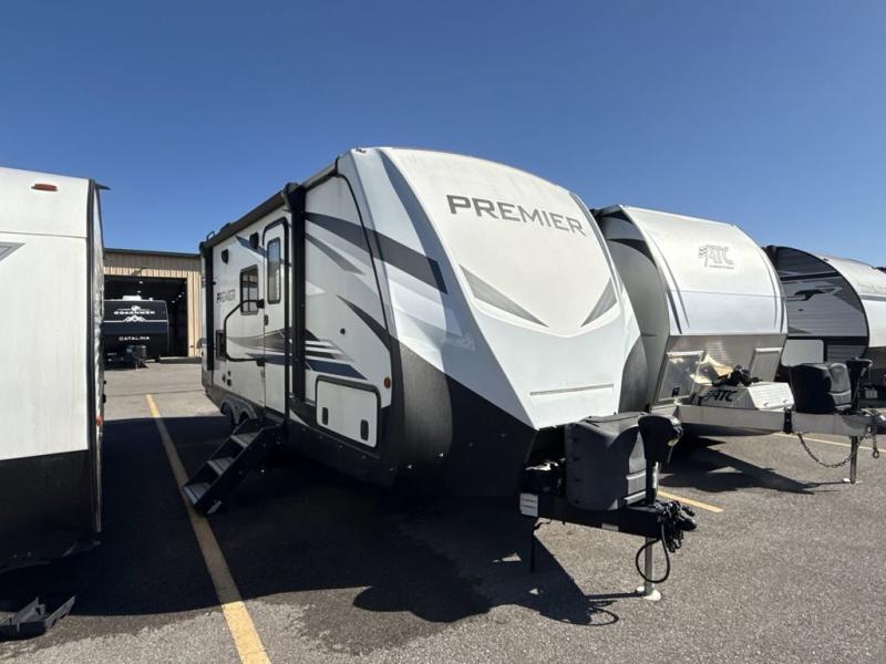 It's time you experience a premier camping experience with one of these Keystone RV Premier Ultra Lite travel trailers! Their full fiberglass front cap is equipped with Line-X rock guard to help protect your unit where ever you go. A roof ladder makes it easy to access and the optional Off the Grid Solar Camping package is a convenient feature you will definitely want to add. The expanded docking station comes with a water heater bypass valve, a winterization valve, and an antifreeze inlet which will make winterizing that much easier. The kitchens are decked out and will make it easy to prepare your best home cooked meals with the built-in spice rack, an under-range cookware drawer, and LG solid surface countertops made of nonporous materials to reduce bacteria growth and makes them easier to maintain. Come find your perfect model today!