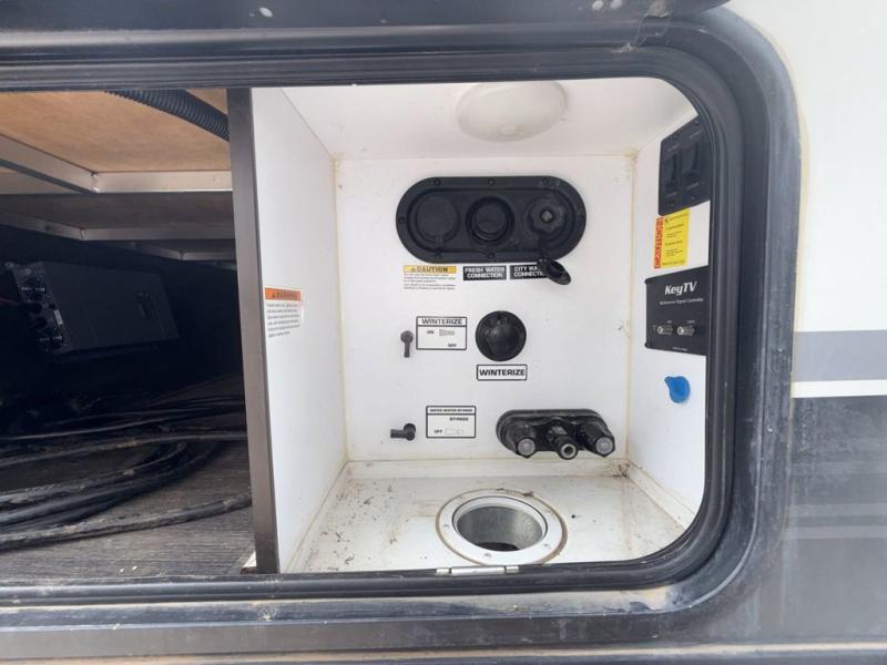 You and your spouse are going to love taking weekend excursions in this travel trailer! It features a front queen bed with wardrobes on either side and a laundry chute on one side to keep your dirty clothes out of the way. After you have prepared a delicious meal with Furrion three burner range and oven, you can head to the U-shaped dinette to enjoy it or if you chose the optional luxury cinema recliners then you can sit back and relax while you eat and watch your favorite movie on the LCD TV. The full rear bathroom has a tub/shower with a skylight above for extra headroom and natural lighting, as well as a wardrobe to store your towels!