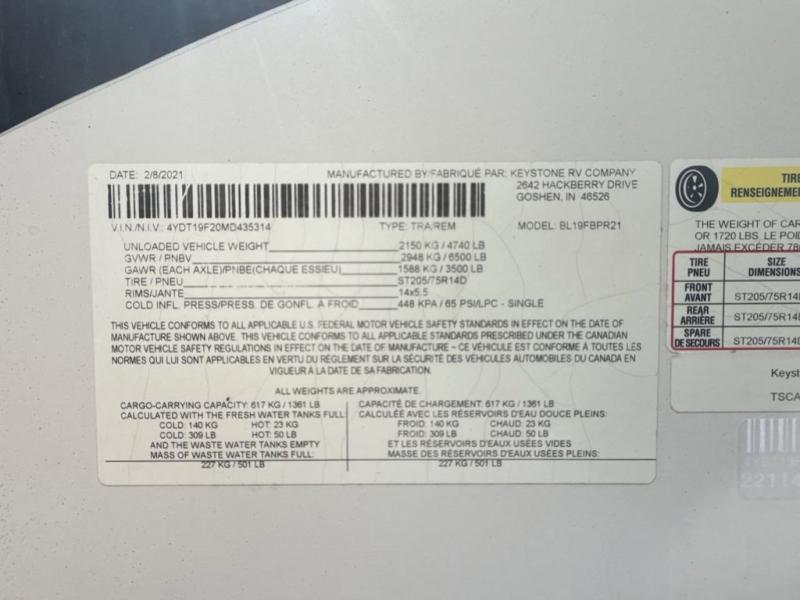 Used 2021 Keystone RV Bullet M-19 FBPR Travel Trailer