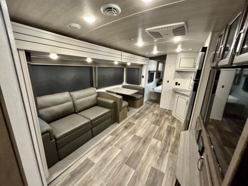 The Keystone Cougar Half-Ton fifth wheel and travel trailers are known as one of America's favorites for a reason! Some of those reasons are the exclusive features that come from Keystone, like the preparations for 4G and Wi-Fi, the in-floor heating ducts, and the Hyper Deck flooring. The Cougar Half-Ton has a Climate Guard protection package to keep you safe during inclement weather, and you'll also find an iN-Command Generation 3 with global connect. Use the 21" Furrion range with Piezo ignition to create all of those familiar meals from home, and add on the optional Off The Grid Solar Camping Package that comes with a roof-mounted solar panel, 30 AMP solar charging system, 2,000W pure sine inverter, and four inverted outlets.
