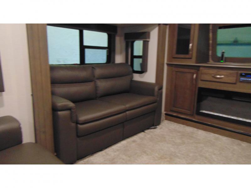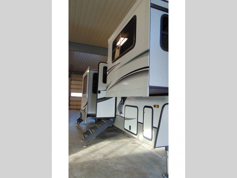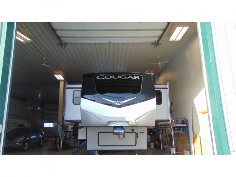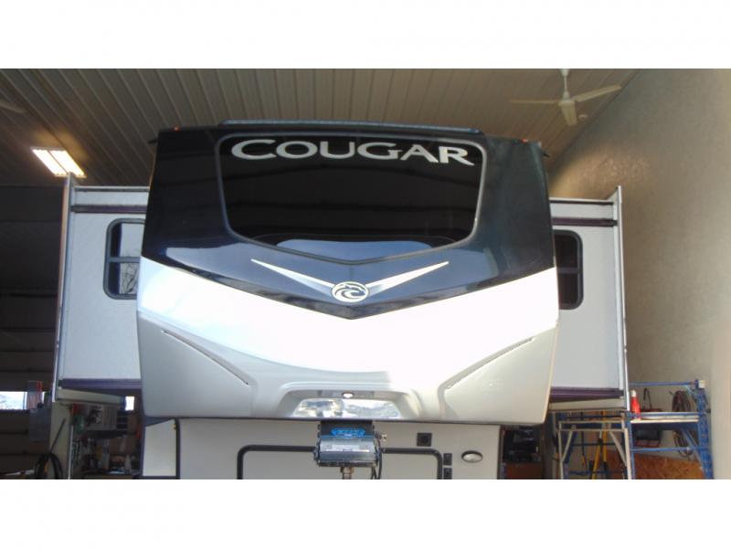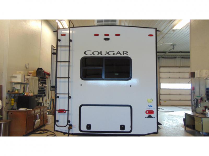 With any Keystone Cougar fifth wheel and toy hauler you will experience the MaxTurn technology which enables you to maneuver easily into the campsite, and the electric four-point auto leveling system makes it easy to set up too! The heavy duty axles with never-adjust brakes and Road Armor™ shock absorbing equalizer makes for a smooth trip. With a Climate Guard protection package and 12V electric heat pads on all holding tanks, you can camp anytime of the year. The 5/8" one-piece DynaSpan® flooring is easy to clean so live out your dreams, choose your favorite Cougar today!
