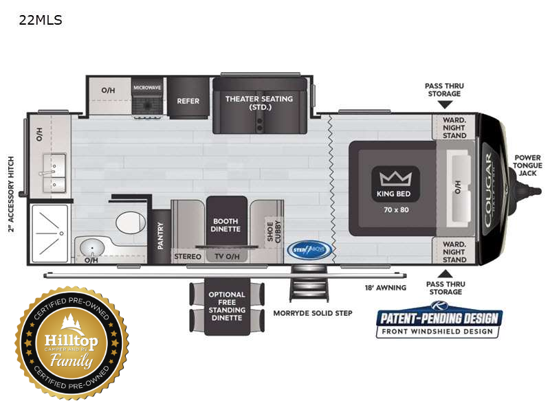 The Keystone Cougar Half-Ton fifth wheel and travel trailers are known as one of America's favorites for a reason! Some of those reasons are the exclusive features that come from Keystone, like the preparations for 4G and Wi-Fi, the in-floor heating ducts, and the Hyper Deck flooring. The Cougar Half-Ton has a Climate Guard protection package to keep you safe during inclement weather, and you'll also find an iN-Command Generation 3 with global connect. Use the 21" Furrion range with Piezo ignition to create all of those familiar meals from home, and add on the optional Off The Grid Solar Camping Package that comes with a roof-mounted solar panel, 30 AMP solar charging system, 2,000W pure sine inverter, and four inverted outlets.