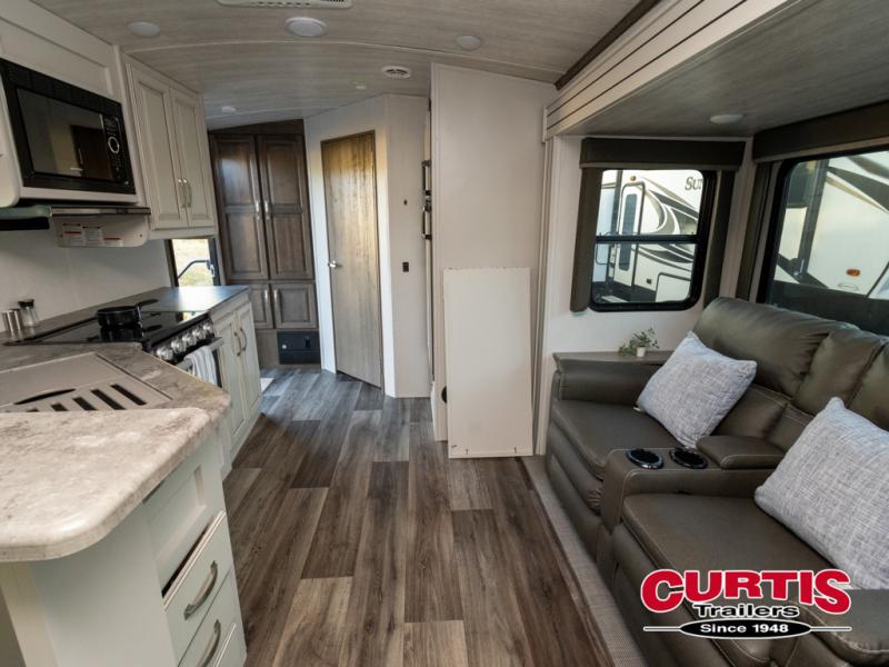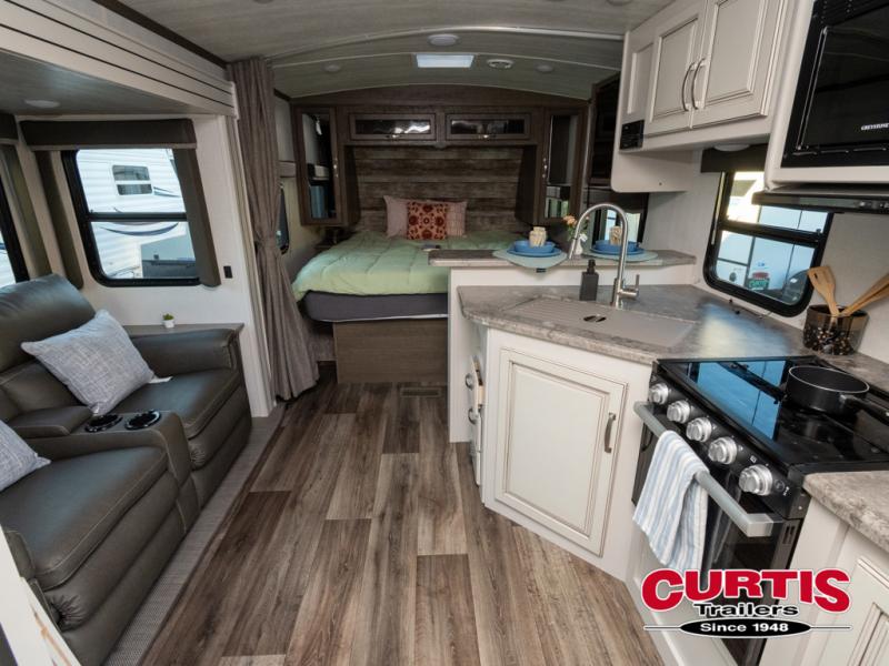 The Keystone Cougar Half-Ton fifth wheel and travel trailers are known as one of America's favorites for a reason! Some of those reasons are the exclusive features that come from Keystone, like the preparations for 4G and Wi-Fi, the in-floor heating ducts, and the Hyper Deck flooring. The Cougar Half-Ton has a Climate Guard protection package to keep you safe during inclement weather, and you'll also find an iN-Command Generation 3 with global connect. Use the 21" Furrion range with Piezo ignition to create all of those familiar meals from home, and add on the optional Off The Grid Solar Camping Package that comes with a roof-mounted solar panel, 30 AMP solar charging system, 2,000W pure sine inverter, and four inverted outlets.