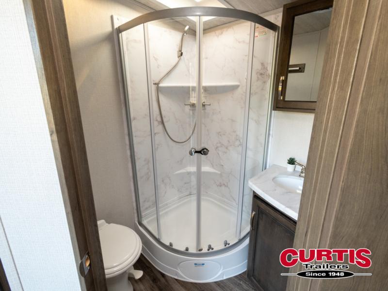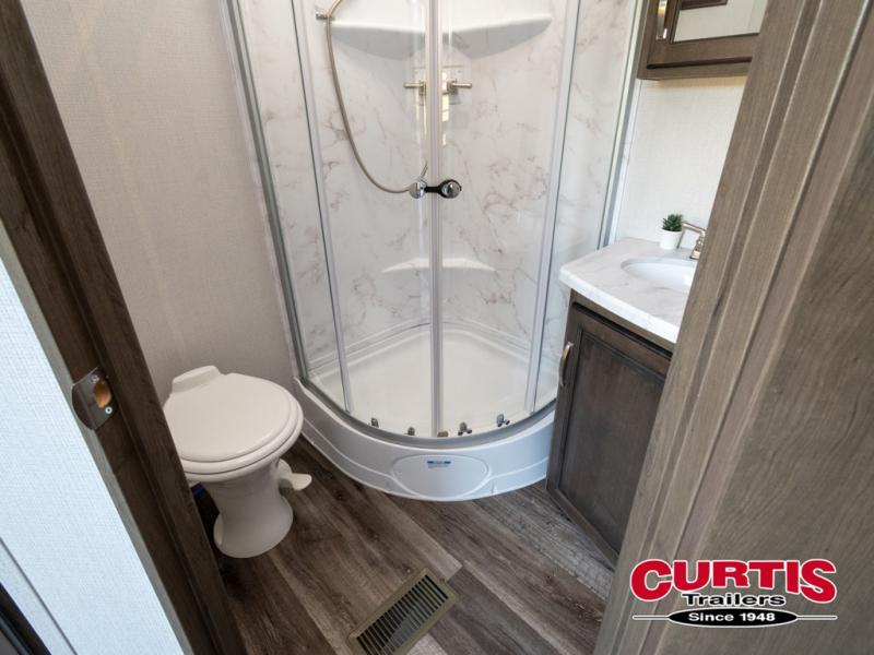 Imagine waking up from your own king bed to enjoy a hike, a bike ride, or a relaxing time outside under the 16' power awning while you wait for your spouse to wake up. With this Cougar Half-Ton travel trailer, you can make breakfast inside with full amenities and eat at the U-shaped dinette while looking out at the views. You will be able to get cleaned up in the full bathroom without having to wait your turn for the public facilities. Plus, there is a privacy curtain for the bedroom so that you have an additional place to get ready, and the bar top gives you extra room to sit down with a hot meal.