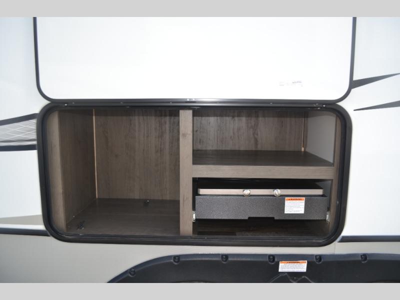If you could cook outside or inside, which would it be? With this Cougar Half-Ton travel trailer, you get to decide that each time you make a meal. The outdoor grill and mini refrigerator are a great convenience while you play outside, and the interior kitchen pantry is located right next to the main entry door for quick access. You also have a second entry door that is located in the master bedroom, as an added convenience. The main living area offers you plenty of seating and dining space with its 68" tri-fold sleeper sofa and booth dinette. You will surely enjoy sleeping on your own king bed at night and closing the door for privacy when you have overnight guests.