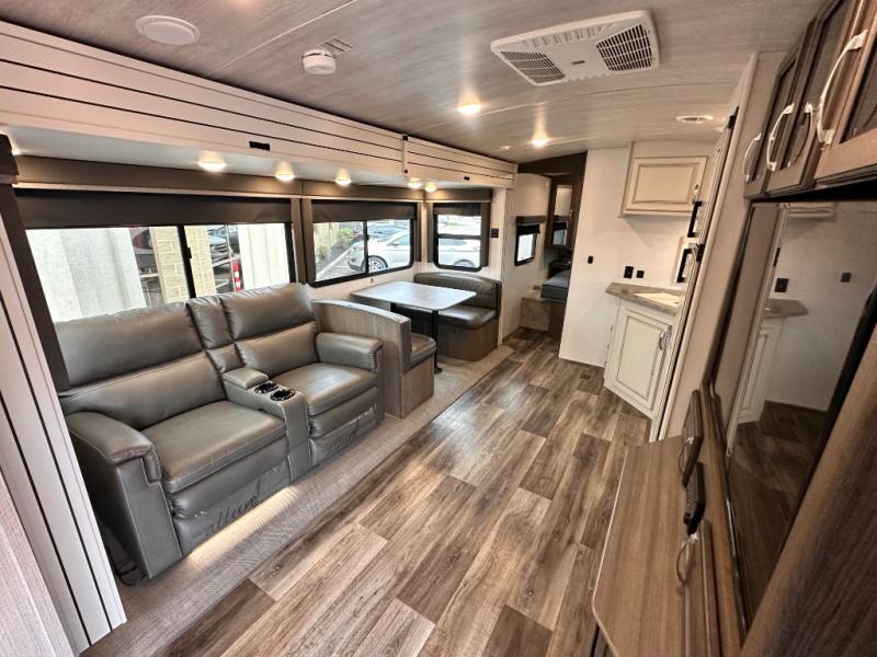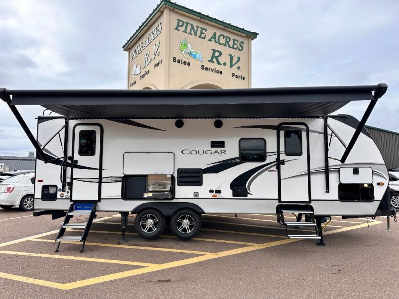 The Keystone Cougar Half-Ton fifth wheel and travel trailers are known as one of America's favorites for a reason! Some of those reasons are the exclusive features that come from Keystone, like the preparations for 4G and Wi-Fi, the in-floor heating ducts, and the Hyper Deck flooring. The Cougar Half-Ton has a Climate Guard protection package to keep you safe during inclement weather, and you'll also find an iN-Command Generation 3 with global connect. Use the 21" Furrion range with Piezo ignition to create all of those familiar meals from home, and add on the optional Off The Grid Solar Camping Package that comes with a roof-mounted solar panel, 30 AMP solar charging system, 2,000W pure sine inverter, and four inverted outlets.