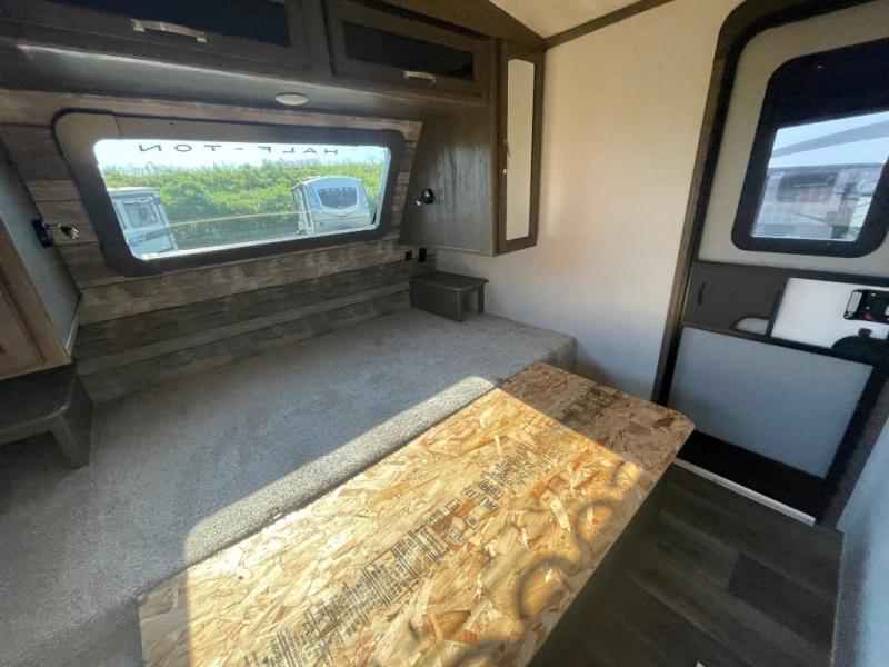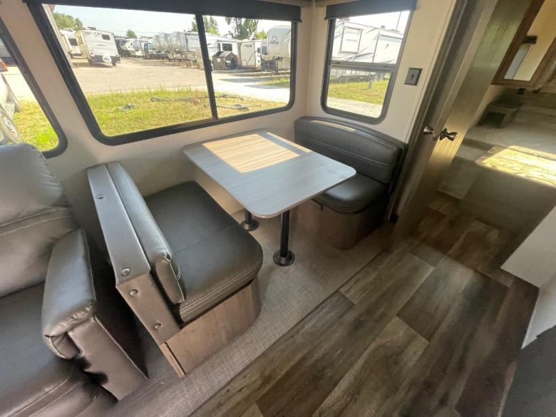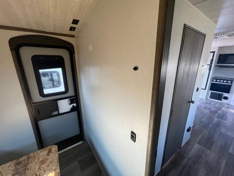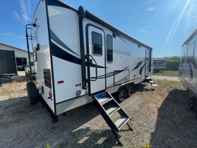 Whether you like to get away to a private campsite in the woods or a local state park, this Cougar Half-Ton travel trailer will let you enjoy every place you go! The 68" tri-fold sleeper sofa and booth dinette are great for any overnight guests that join you while you sleep like a king on the king-size bed in the front private bedroom. The bedroom also has the second exterior entry door so that you can come and go as you please. Plus, everyone will enjoy having a summer barbecue outside at the outdoor kitchen.