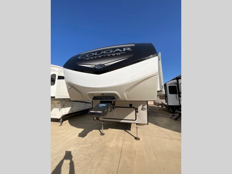 The Keystone Cougar Half-Ton fifth wheel and travel trailers are known as one of America's favorites for a reason! Some of those reasons are the exclusive features that come from Keystone, like the preparations for 4G and Wi-Fi, the in-floor heating ducts, and the Hyper Deck flooring. The Cougar Half-Ton has a Climate Guard protection package to keep you safe during inclement weather, and you'll also find an iN-Command Generation 3 with global connect. Use the 21" Furrion range with Piezo ignition to create all of those familiar meals from home, and add on the optional Off The Grid Solar Camping Package that comes with a roof-mounted solar panel, 30 AMP solar charging system, 2,000W pure sine inverter, and four inverted outlets.