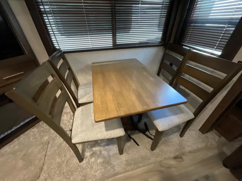 When you are ready to enjoy the fresh outdoor air, you'll want this Cougar Half-Ton fifth wheel to be there with you! The interior will feel spacious and comfortable because of the opposing slides, and you'll have plenty of seating to offer to any friends that stop by with the two recliners in the back, the booth dinette, and the 68" tri-fold sleeper sofa. You can sit down and chat, or you can head outside to grab some fresh air underneath the 10' power awning.