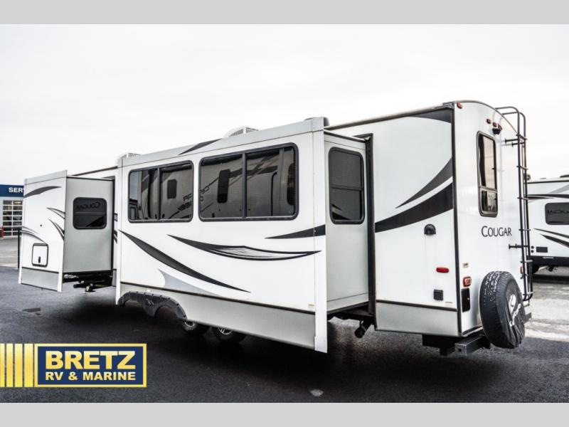 The Keystone Cougar Half-Ton fifth wheel and travel trailers are known as one of America's favorites for a reason! Some of those reasons are the exclusive features that come from Keystone, like the preparations for 4G and Wi-Fi, the in-floor heating ducts, and the Hyper Deck flooring. The Cougar Half-Ton has a Climate Guard protection package to keep you safe during inclement weather, and you'll also find an iN-Command Generation 3 with global connect. Use the 21" Furrion range with Piezo ignition to create all of those familiar meals from home, and add on the optional Off The Grid Solar Camping Package that comes with a roof-mounted solar panel, 30 AMP solar charging system, 2,000W pure sine inverter, and four inverted outlets.