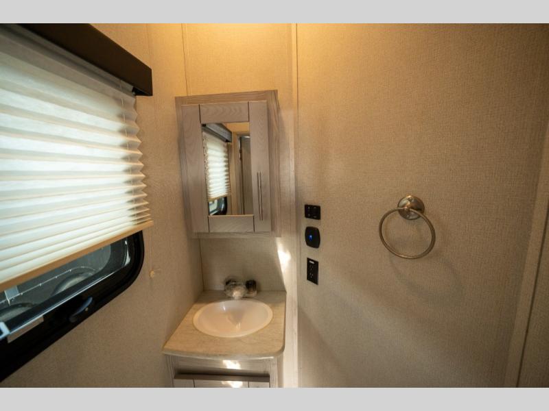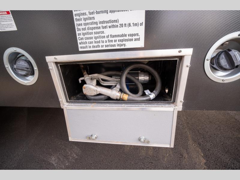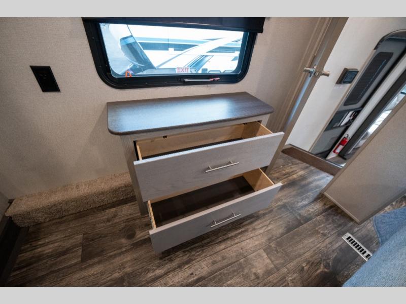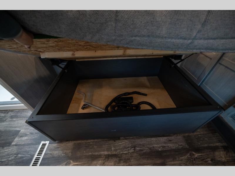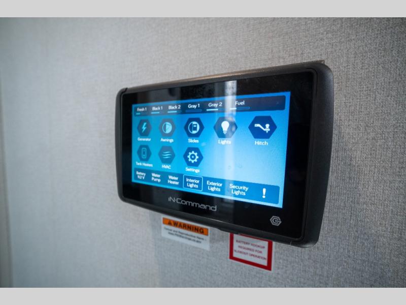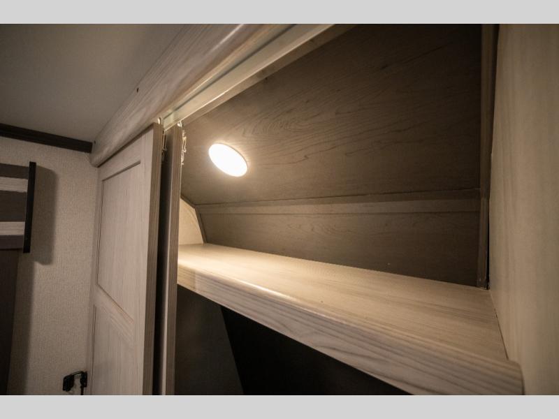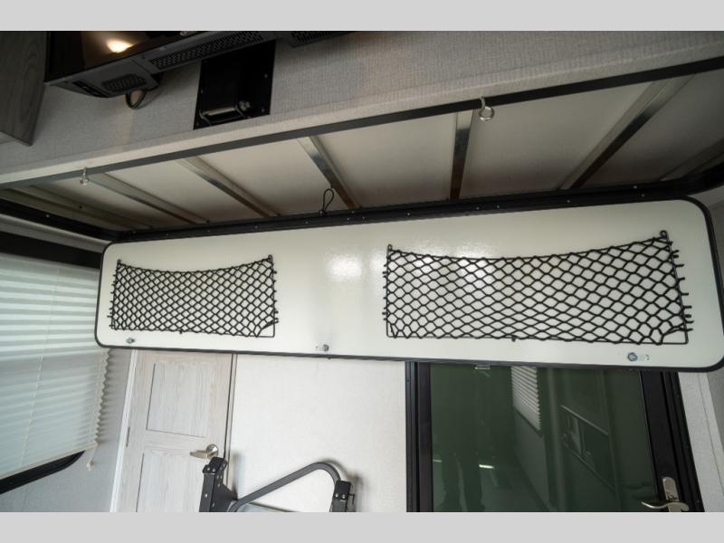 Enjoy open living spaces and convenient features in this spacious toy hauler. The 11' separate garage includes its own exterior entrance door, a loft with a bunk mat, plus a half bath for guests. You can comfortably sleep eight people with the added dual opposing sofas and a top queen bed, and you'll find three LED TV's throughout for your entertainment. The main living area includes a table with swing out stools the kids will love, and the two pantries can hold all the dry goods and snacks. The dual entry full bath will create a front master suite that will feel just like home. Here, you'll enjoy your own LED TV, a dresser and a master closet, plus a space to add an optional washer and dryer if you choose!