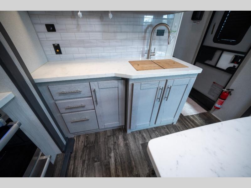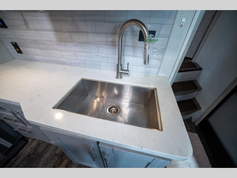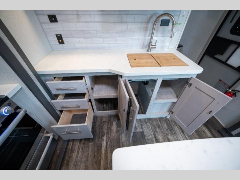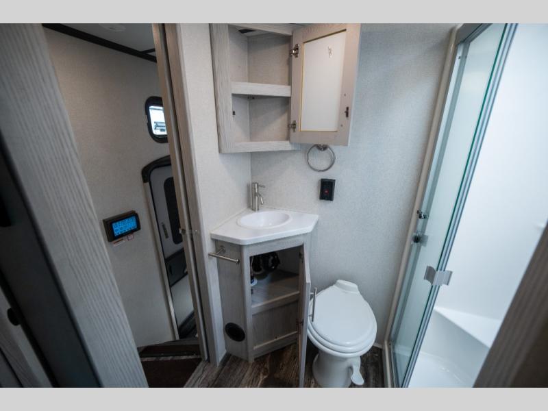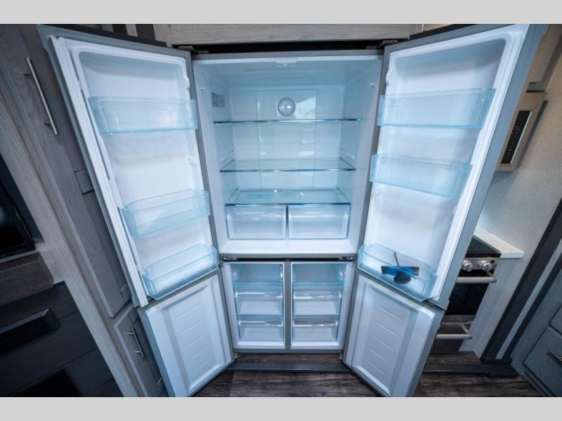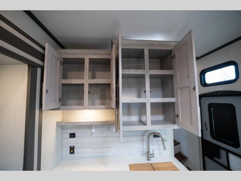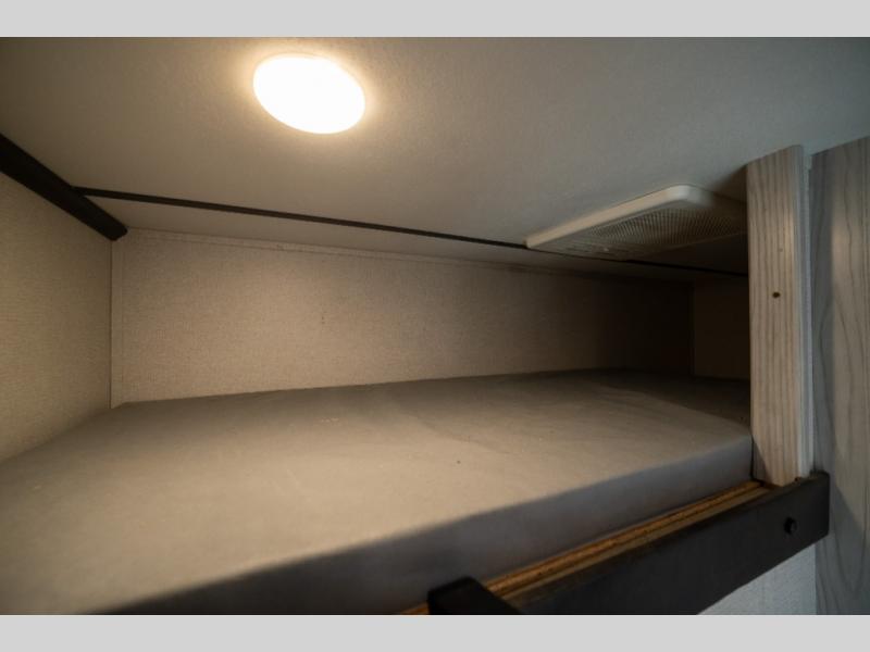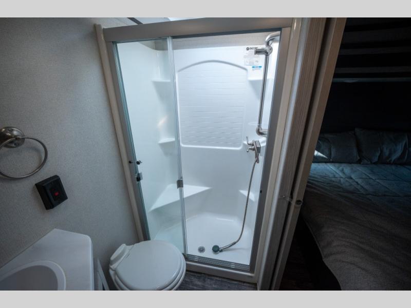 Enjoy open living spaces and convenient features in this spacious toy hauler. The 11' separate garage includes its own exterior entrance door, a loft with a bunk mat, plus a half bath for guests. You can comfortably sleep eight people with the added dual opposing sofas and a top queen bed, and you'll find three LED TV's throughout for your entertainment. The main living area includes a table with swing out stools the kids will love, and the two pantries can hold all the dry goods and snacks. The dual entry full bath will create a front master suite that will feel just like home. Here, you'll enjoy your own LED TV, a dresser and a master closet, plus a space to add an optional washer and dryer if you choose!