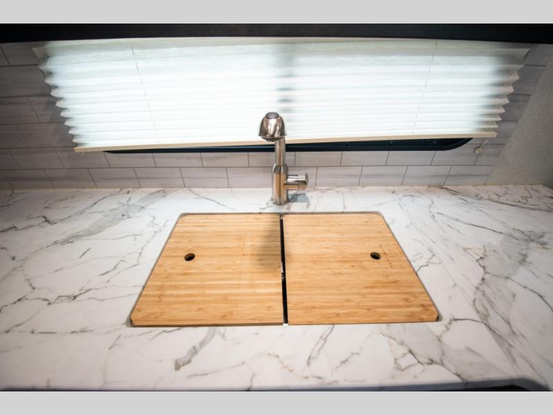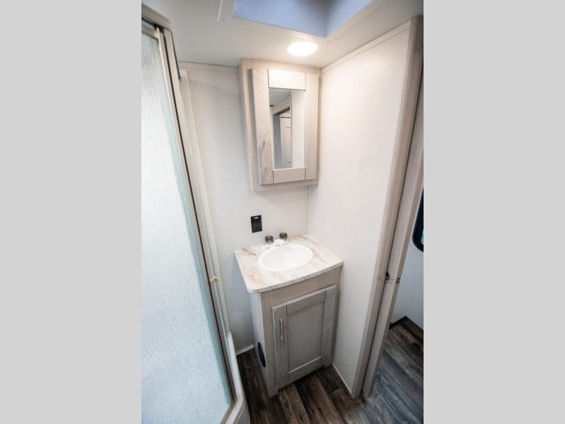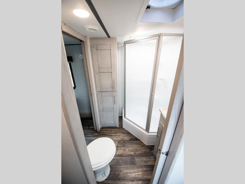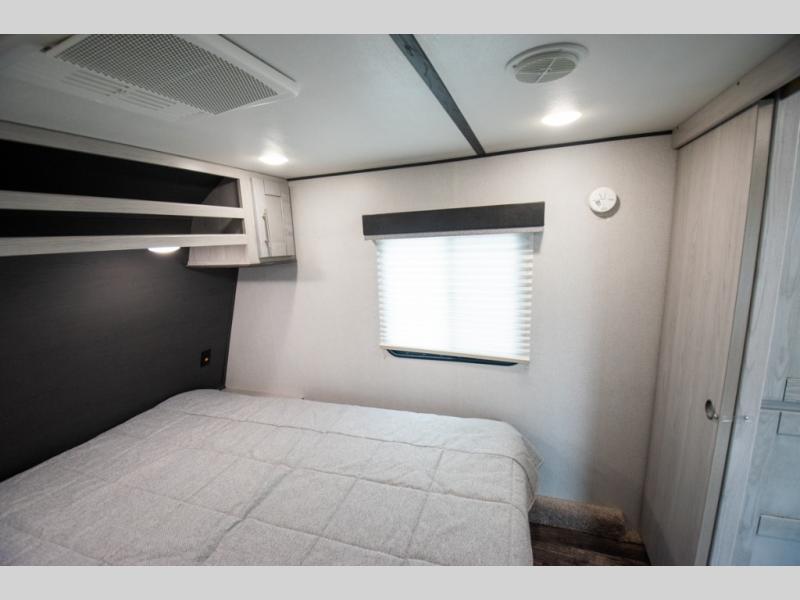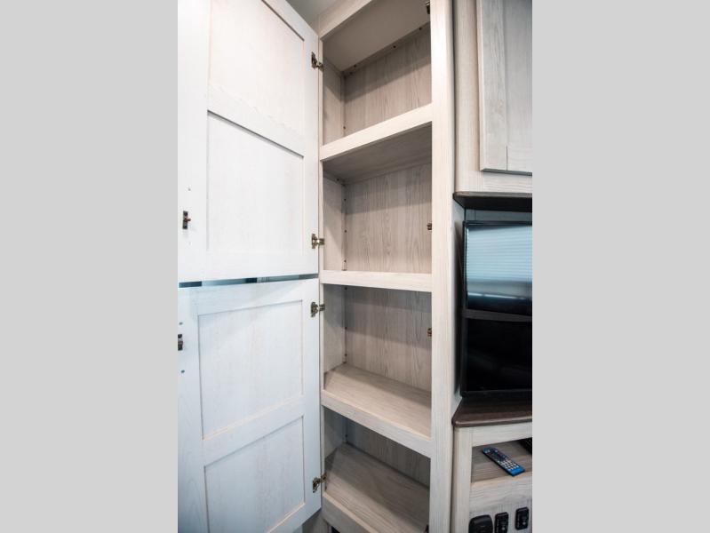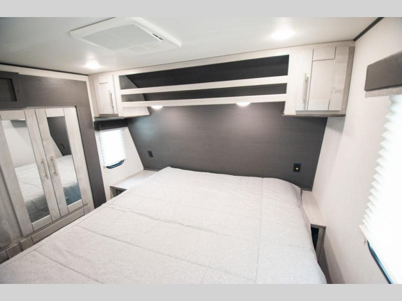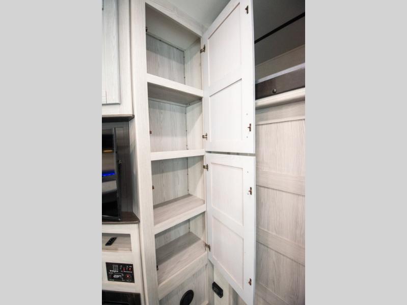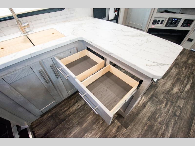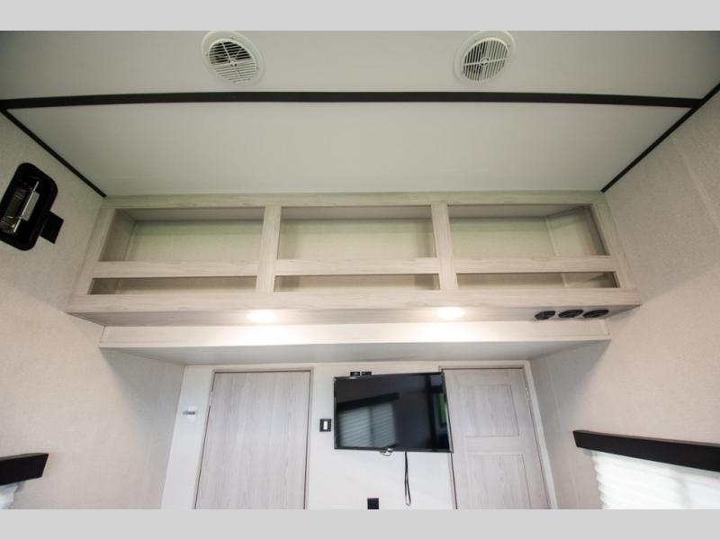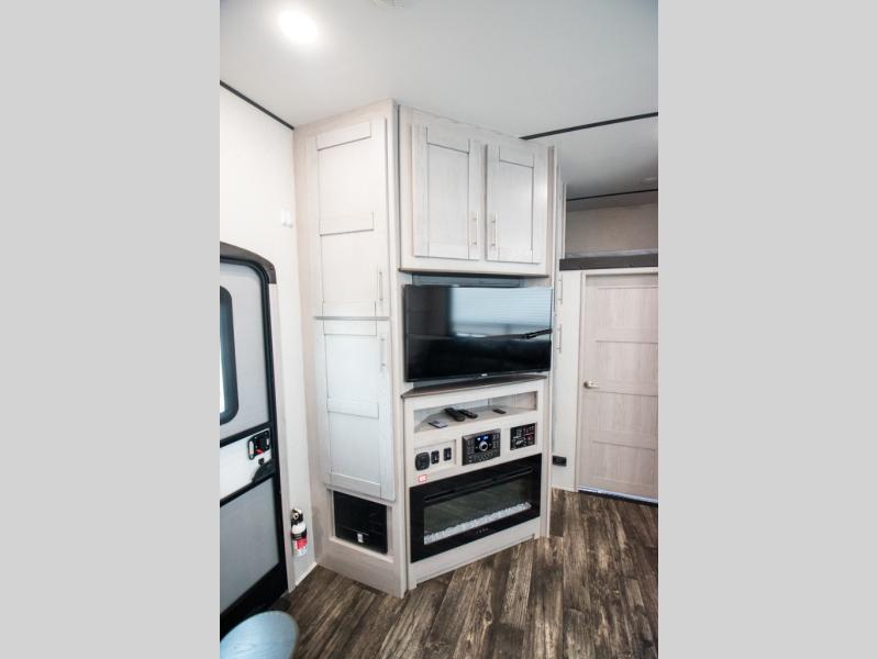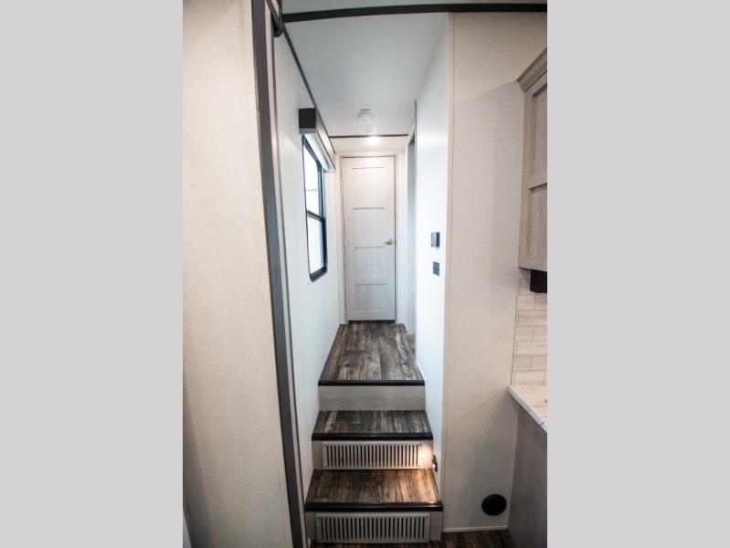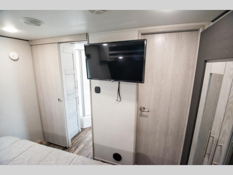 Keystone specifically keeps you, the customer, in mind as they construct and build each Fuzion Impact Edition toy hauler. The 100" wide body and 5k interlock system with frame-welded tie-downs ensure convenient and secure shipment of your favorite ride-on toys. You will appreciate the Keystone Exclusives, such as the Tru-fit slide construction, the in-floor heating ducts, 4G LTE and Wi-Fi prep, plus many more hassle-free features. Each model includes a 30-gal. fuel station with a 12V pump and a static line and the Omni-Chill A/C system, which is the highest-performing energy-efficient system available. Inside, you will love the hardwood cabinetry, pressed countertops in the kitchen, and large tinted safety-glass panoramic windows to let natural light in. These toy haulers also feature plenty of storage space for all your belongings, including under-bed storage and a lighted pass-through compartment!