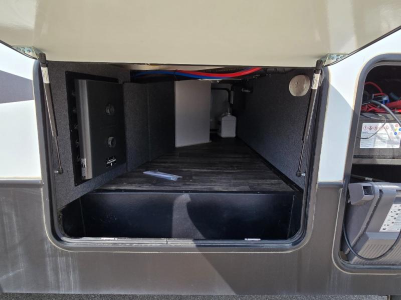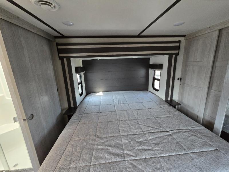 Load up your kayaks and your bikes and head to the lake in this toy hauler. The 13' separate garage includes its own half bath, an LED TV, plus a loft for little ones. head to the main living area to dine at the table with swing out stools, or you can sit outside under the two power awnings. There is also an exterior LED TV to entertain guests during the big game. Everyone can have their turn cleaning up in the full dual entry bath, and you and your spouse will appreciate your own master bedroom up front. Bring along all of your clothes with a master closet and a dresser, plus there is a space to add an optional washer and dryer!