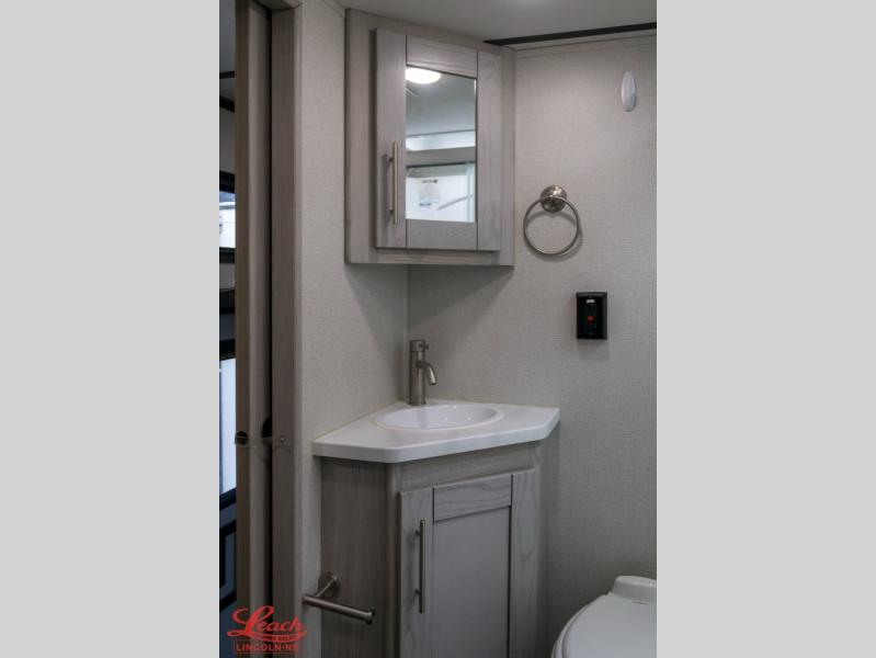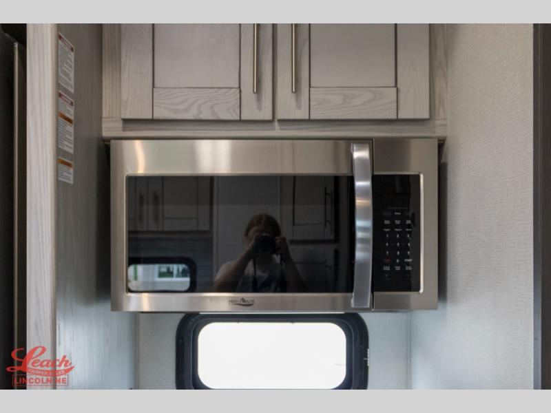 Your family will love this spacious toy hauler that can sleep nine people each night. The triple slides will provide added space to move about freely, and the bath and a half will be a big plus when camping with a larger group. Prepare all your meals on the three burner range with a glass top, or use the convection microwave, and you'll find ample counter space to set out fresh veggies. The 13' separate garage includes dual opposing sofas with a top queen bed, plus a loft for little ones. Head to the front master suite to rest on the slide out residential queen bed, and all your clothes can be stored in the master closet!