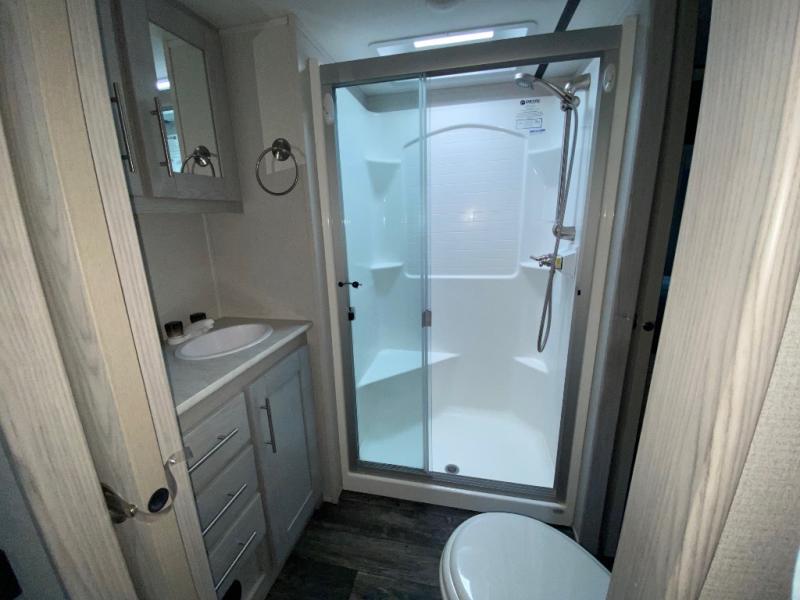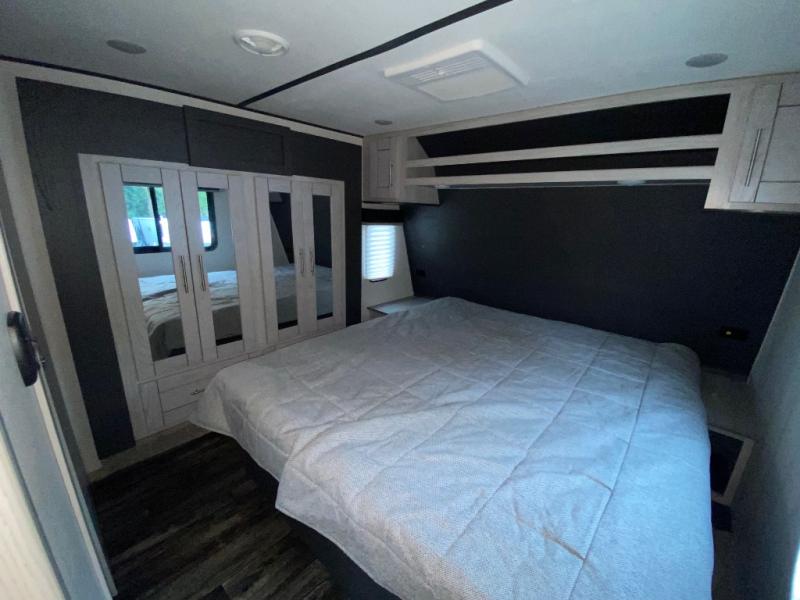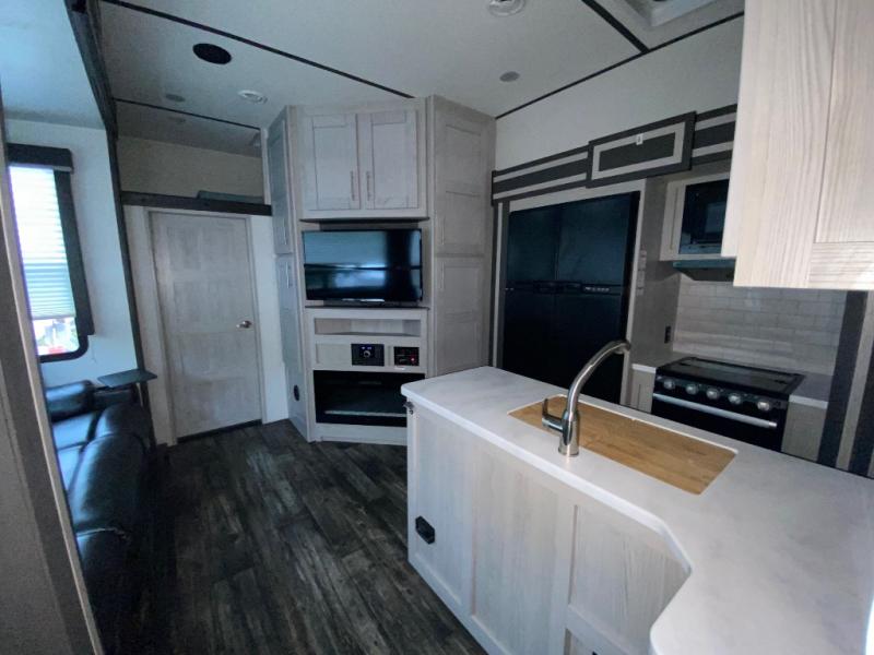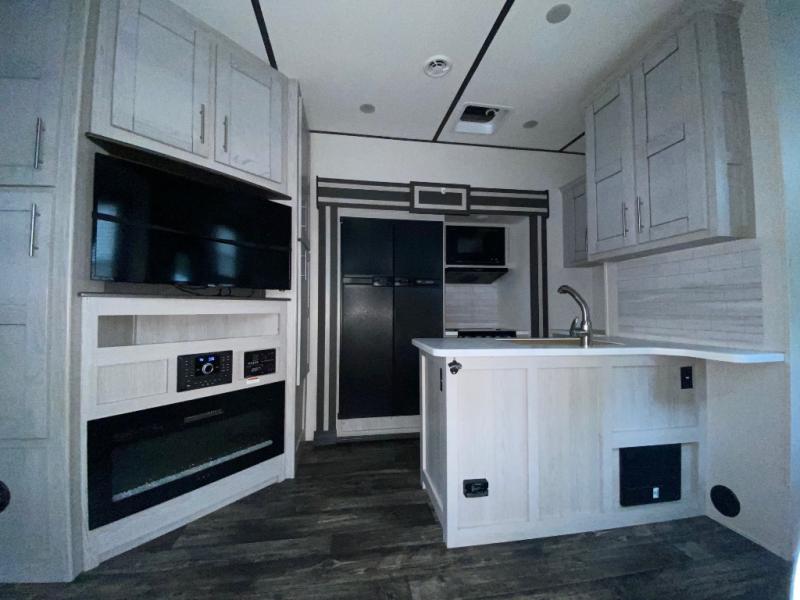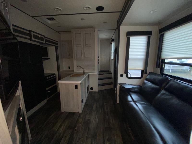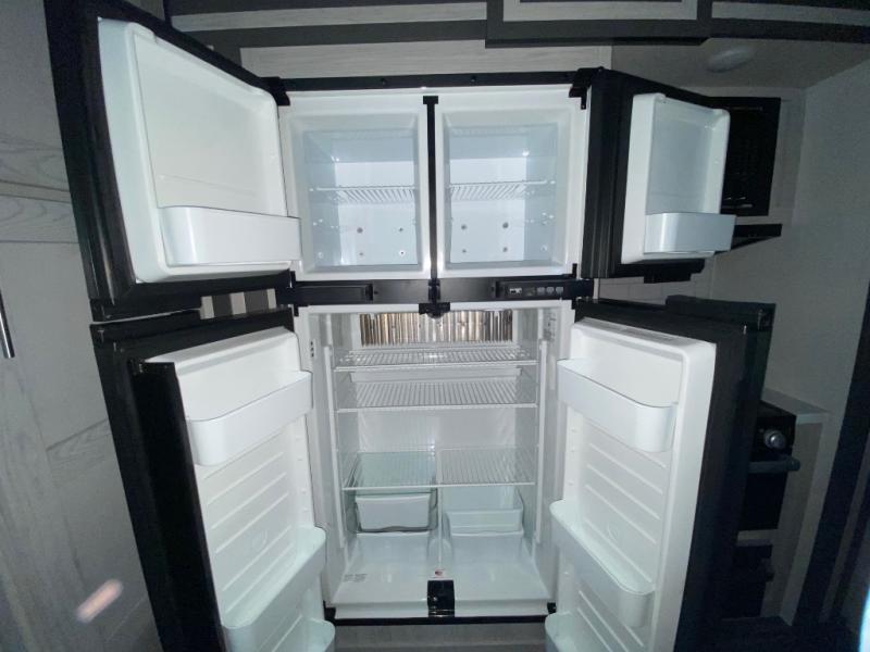 Keystone specifically keeps you, the customer, in mind as they construct and build each Fuzion Impact Edition toy hauler. The 100" wide body and 5k interlock system with frame-welded tie-downs ensure convenient and secure shipment of your favorite ride-on toys. You will appreciate the Keystone Exclusives, such as the Tru-fit slide construction, the in-floor heating ducts, 4G LTE and Wi-Fi prep, plus many more hassle-free features. Each model includes a 30-gal. fuel station with a 12V pump and a static line and the Omni-Chill A/C system, which is the highest-performing energy-efficient system available. Inside, you will love the hardwood cabinetry, pressed countertops in the kitchen, and large tinted safety-glass panoramic windows to let natural light in. These toy haulers also feature plenty of storage space for all your belongings, including under-bed storage and a lighted pass-through compartment!