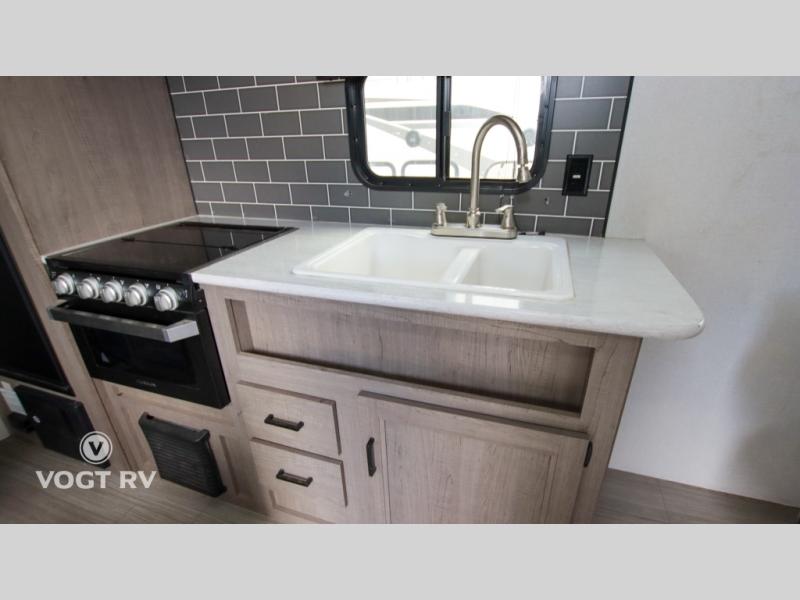 VERSATILE AND LIGHTWEIGHTVERSATILE AND LIGHTWEIGHT TRAVEL TRAILER WITH MURPHY BED, BOOTH DINETTE, PASS-THROUGH STORAGE, BATHROOM WARDROBE, THREE BURNER RANGE, REAR BATH AND MORE!