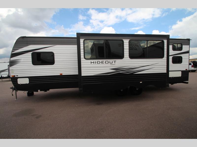 Load up your family and come see just how easy camping can be in this single-slide Hideout travel trailer. Your kids will enjoy the double-size bunks because they will be able to bring along friends since this trailer can sleep eight people. You will make plenty of memories together around the U-shaped dinette as you swap adventure stories from the day, or you can gather outside by the outdoor kitchen. Another key feature is the two entry doors that allow you to easily slip back inside after going out for an evening walk under the stars.