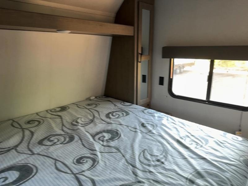 You will love the rear kitchen layout and large slide in this Keystone Hideout travel trailer. With ample space to sleep three people, this unit is perfect for your family to enjoy. The hardest decision you will have to make while you are away from home is where you will fix your meals, inside or at the outdoor kitchen. If you decide to cook outside, you can also enjoy your meal underneath the lighted adjustable power awning as you take in the beautiful sunset. The full bathroom has everything you need to get ready for the day, like a 38" walk-in shower and linen closet, and it also is directly next to the front private bedroom.