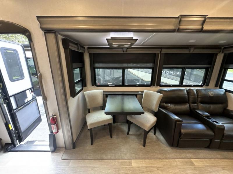 If you are an experienced RVer who is ready to gain more freedom on the road, then you need to check out the Keystone Montana fifth wheel! With exceptional craftsmanship, durable construction, dependable luxury, and cutting-edge technology, the Montana is truly a dream. The Montana has some easy set-up features, like an electric patio awning with LED lights, Hitch Vision with LED lighting, and MORryde Step Above entry steps with strut assist for an easy entrance. The Four Seasons Living Package allows you to camp year around with features such as, a heated and enclosed underbelly, a reflective foil insulated front cap, dual attic vents, and more! The Montana has you covered with convenient camping features, like the central vacuum, the stackable washer and dryer prep, and the Whisper Quiet Cool A/C's for an evenly and quietly cooled RV. Each model includes solid hardwood cabinet stiles, a 5K BTU decorative fireplace heater, a high-rise pull down faucet in the kitchen, plus many more interior comforts to make you feel right at home.