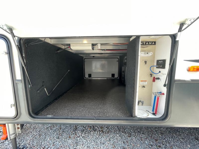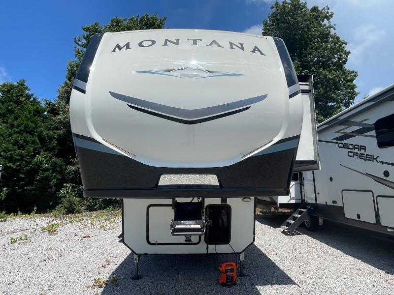 If you are an experienced RVer who is ready to gain more freedom on the road, then you need to check out the Keystone Montana fifth wheel! With exceptional craftsmanship, durable construction, dependable luxury, and cutting-edge technology, the Montana is truly a dream. The Montana has some easy set-up features, like an electric patio awning with LED lights, Hitch Vision with LED lighting, and MORryde Step Above entry steps with strut assist for an easy entrance. The Four Seasons Living Package allows you to camp year around with features such as, a heated and enclosed underbelly, a reflective foil insulated front cap, dual attic vents, and more! The Montana has you covered with convenient camping features, like the central vacuum, the stackable washer and dryer prep, and the Whisper Quiet Cool A/C's for an evenly and quietly cooled RV. Each model includes solid hardwood cabinet stiles, a 5K BTU decorative fireplace heater, a high-rise pull down faucet in the kitchen, plus many more interior comforts to make you feel right at home. .