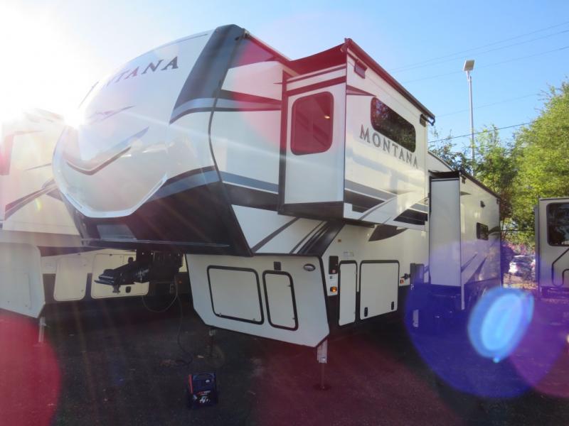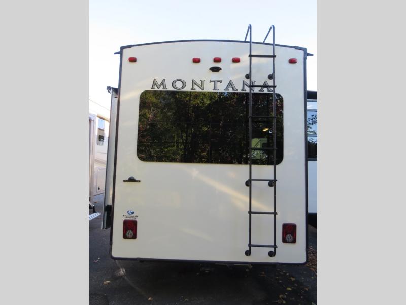 If you are an experienced RVer who is ready to gain more freedom on the road, then you need to check out the Keystone Montana fifth wheel! With exceptional craftsmanship, durable construction, dependable luxury, and cutting-edge technology, the Montana is truly a dream. The Montana has some easy set-up features, like an electric patio awning with LED lights, Hitch Vision with LED lighting, and MORryde Step Above entry steps with strut assist for an easy entrance. The Four Seasons Living Package allows you to camp year around with features such as, a heated and enclosed underbelly, a reflective foil insulated front cap, dual attic vents, and more! The Montana has you covered with convenient camping features, like the central vacuum, the stackable washer and dryer prep, and the Whisper Quiet Cool A/C's for an evenly and quietly cooled RV. Each model includes solid hardwood cabinet stiles, a 5K BTU decorative fireplace heater, a high-rise pull down faucet in the kitchen, plus many more interior comforts to make you feel right at home. .
