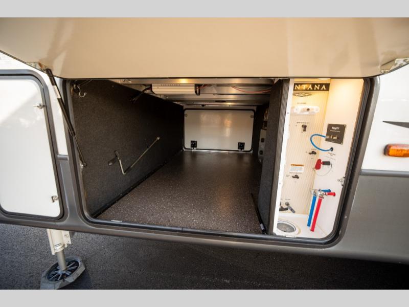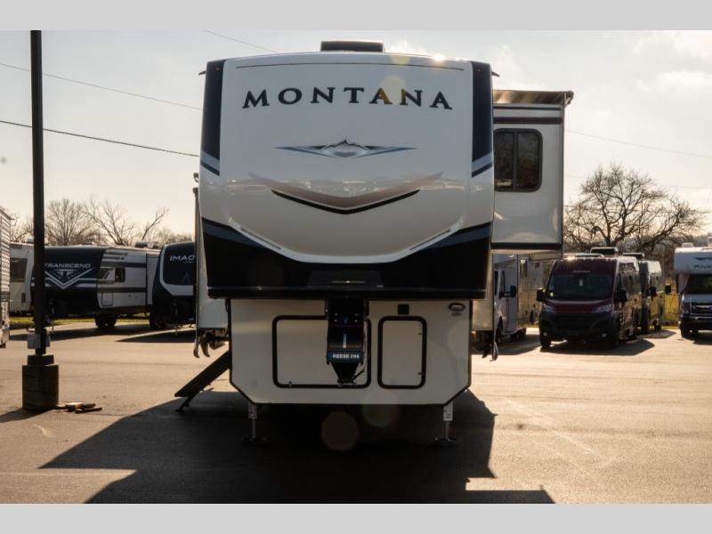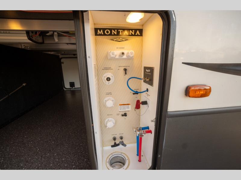 If you are an experienced RVer who is ready to gain more freedom on the road, then you need to check out the Keystone Montana fifth wheel! With exceptional craftsmanship, durable construction, dependable luxury, and cutting-edge technology, the Montana is truly a dream. The Montana has some easy set-up features, like an electric patio awning with LED lights, Hitch Vision with LED lighting, and MORryde Step Above entry steps with strut assist for an easy entrance. The Four Seasons Living Package allows you to camp year around with features such as, a heated and enclosed underbelly, a reflective foil insulated front cap, dual attic vents, and more! The Montana has you covered with convenient camping features, like the central vacuum, the stackable washer and dryer prep, and the Whisper Quiet Cool A/C's for an evenly and quietly cooled RV. Each model includes solid hardwood cabinet stiles, a 5K BTU decorative fireplace heater, a high-rise pull down faucet in the kitchen, plus many more interior comforts to make you feel right at home. .