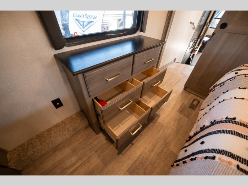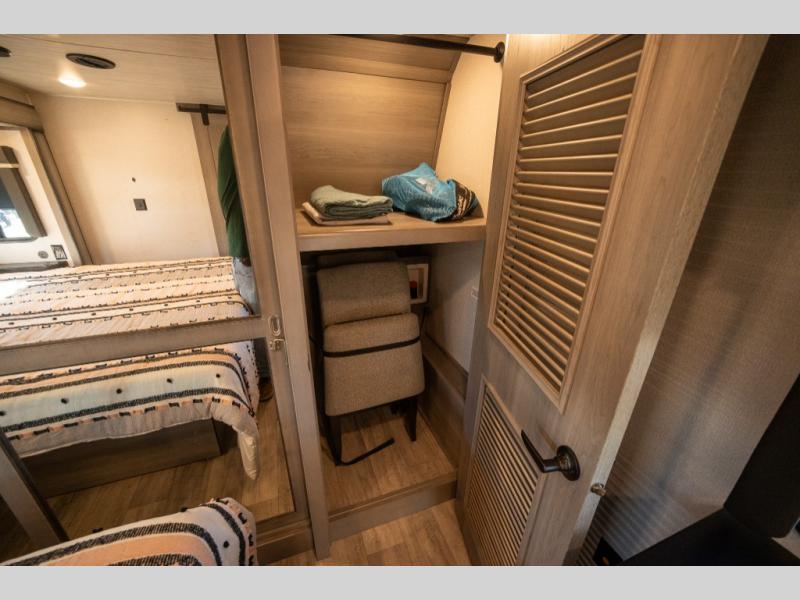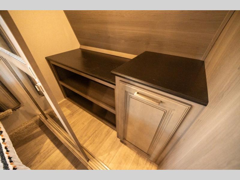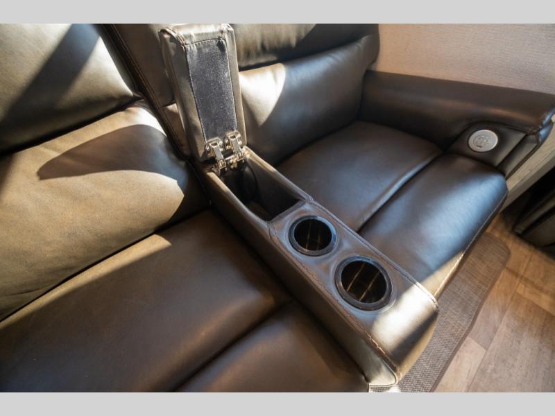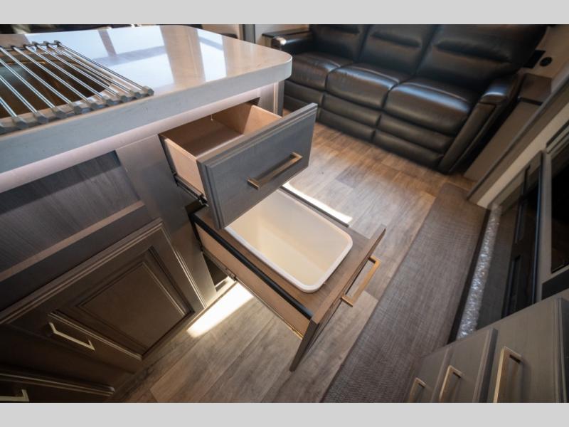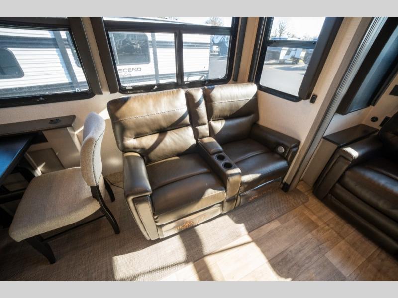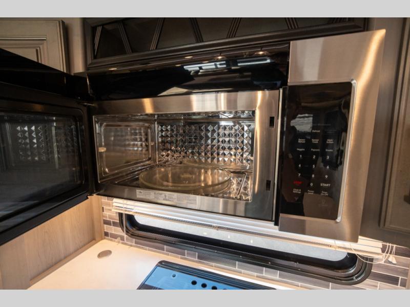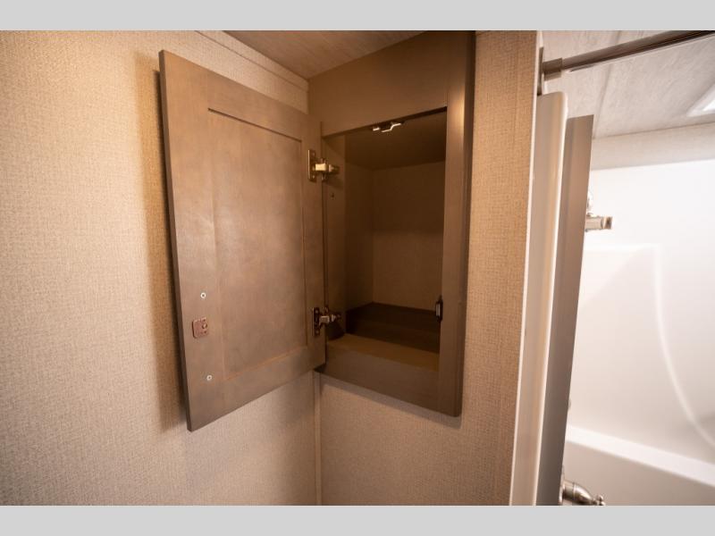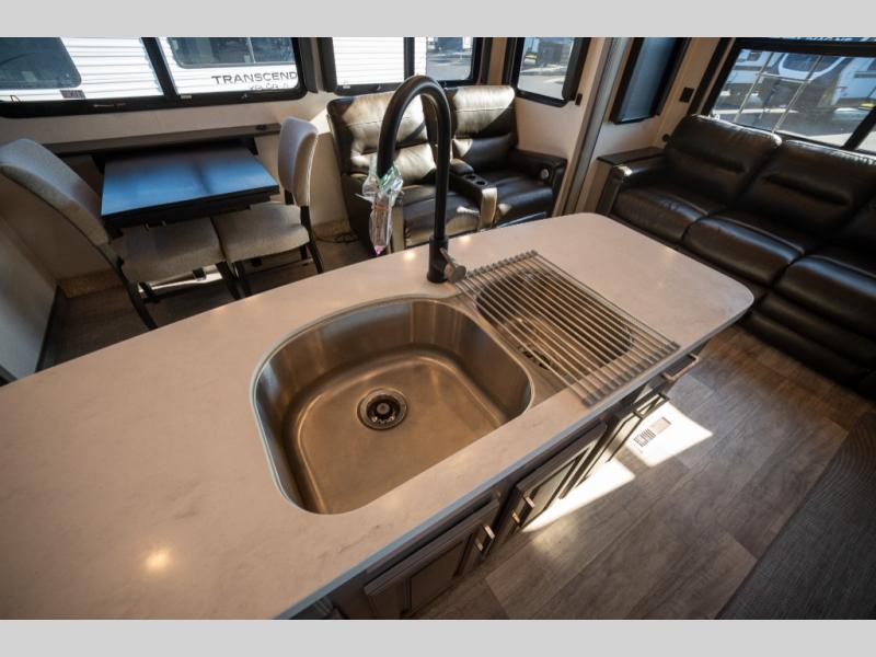 With this Montana fifth wheel, you can have adventures any time! The private bedroom has a barn door that closes it off from the rest of the unit, and the bedroom is fully equipped for comfort with a queen bed slide, a dresser with 32" LED HDTV, a clothing hamper, a huge closet, and an area prepped for the optional washer/dryer. The main living area is also going to feel exceptionally comfortable with its hide-a-bed sofa, power theater seating, fireplace, and 50" LED HDTV. As you spend your afternoon working on dinner, you'll appreciate that the large island provides you with additional prep space, and the coffee station is going to be a fun feature to use both in the morning and in the afternoon for a pick-me-up.
