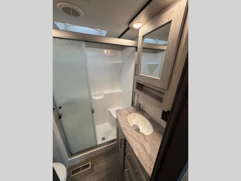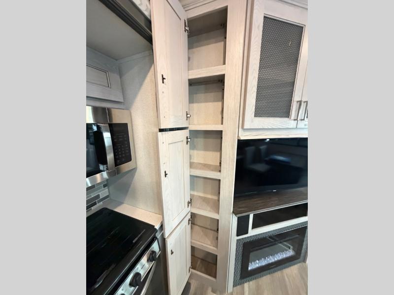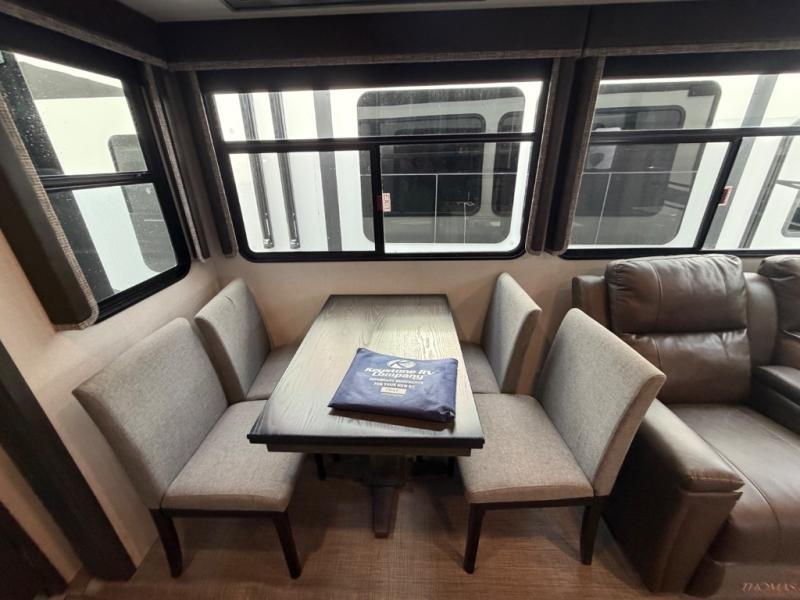 With each Montana High Country fifth wheel by Keystone you will enjoy family-friendly features, lightweight floorplans, and drop-frame construction for maximum storage. Each model is built for four season living with the heated and enclosed underbelly and the astrofoil insulated slide floors and underbelly. The Mystic Ash cabinetry, hardwood decorative slideout fascia, and accent crown molding create a luxurious fifth wheel everyone can get used to. These models include a Whisper Quiet A/C system to cool your space quietly and evenly, plus there is a 35,000 BTU furnace that will allow you to extend your camping season. The Montana High Country fifth wheels are equipped with a Road armor shock absorbing hitch pin for easy towing, and set-up will be a breeze with the Hitch Vision with LED lighting. There are many more features to love about these fifth wheels, like the MaxTurn front cap, the Solera series power awning(s), the residential appliances, and the list goes on!