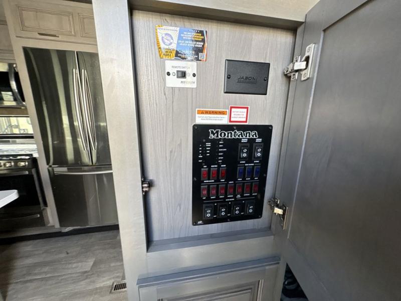 If you are an experienced RVer who is ready to gain more freedom on the road, then you need to check out the Keystone Montana fifth wheel! With exceptional craftsmanship, durable construction, dependable luxury, and cutting-edge technology, the Montana is truly a dream. The Montana has some easy set-up features, like an electric patio awning with LED lights, Hitch Vision with LED lighting, and MORryde Step Above entry steps with strut assist for an easy entrance. The Four Seasons Living Package allows you to camp year around with features such as, a heated and enclosed underbelly, a reflective foil insulated front cap, dual attic vents, and more! The Montana has you covered with convenient camping features, like the central vacuum, the stackable washer and dryer prep, and the Whisper Quiet Cool A/C's for an evenly and quietly cooled RV. Each model includes solid hardwood cabinet stiles, a 5K BTU decorative fireplace heater, a high-rise pull down faucet in the kitchen, plus many more interior comforts to make you feel right at home.