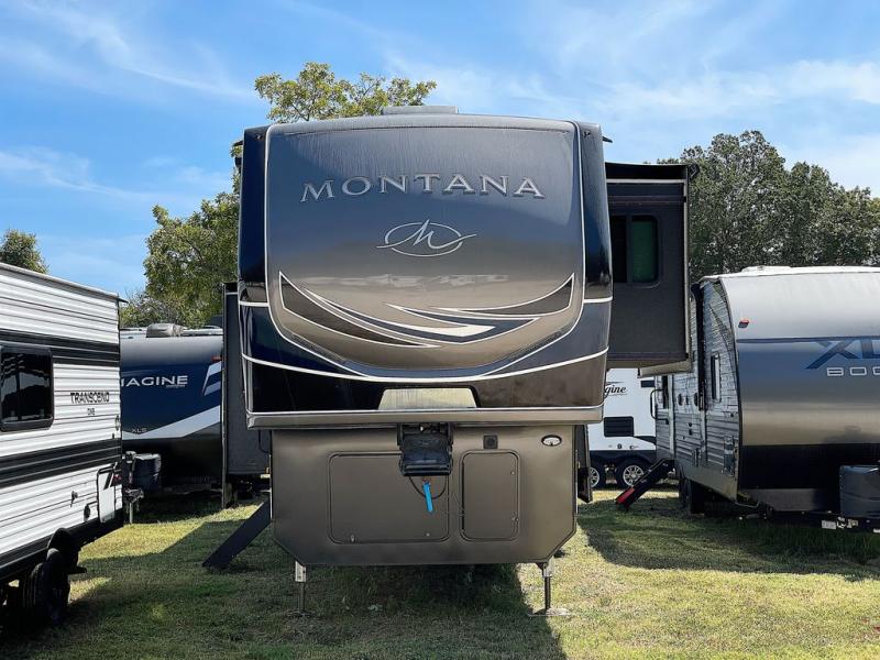 If you are an experienced RVer who is ready to gain more freedom on the road, then you need to check out the Keystone Montana fifth wheel! With exceptional craftsmanship, durable construction, dependable luxury, and cutting-edge technology, the Montana is truly a dream. The Montana has some easy set-up features, like an electric patio awning with LED lights, Hitch Vision with LED lighting, and MORryde Step Above entry steps with strut assist for an easy entrance. The Four Seasons Living Package allows you to camp year around with features such as, a heated and enclosed underbelly, a reflective foil insulated front cap, dual attic vents, and more! The Montana has you covered with convenient camping features, like the central vacuum, the stackable washer and dryer prep, and the Whisper Quiet Cool A/C's for an evenly and quietly cooled RV. Each model includes solid hardwood cabinet stiles, a 5K BTU decorative fireplace heater, a high-rise pull down faucet in the kitchen, plus many more interior comforts to make you feel right at home.