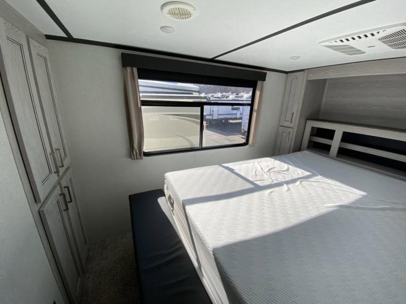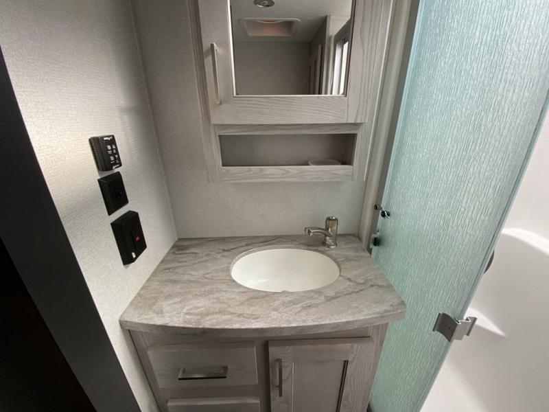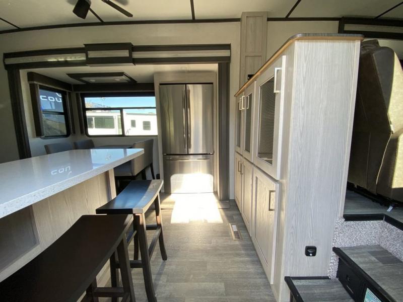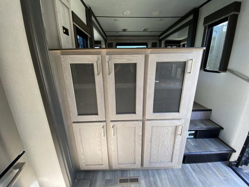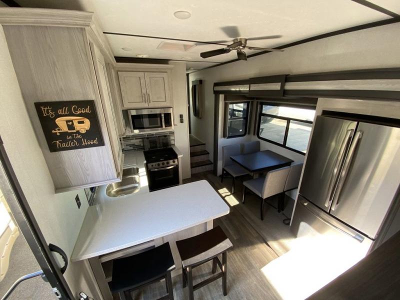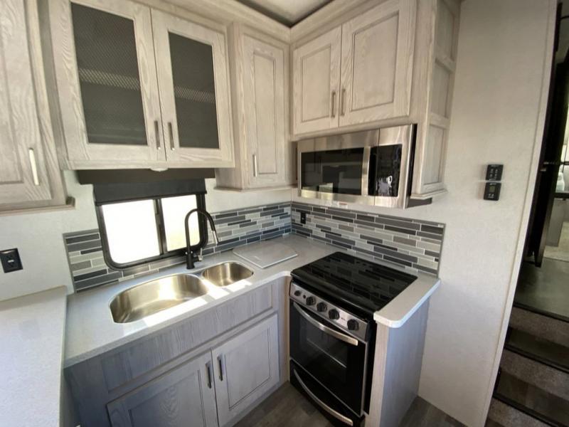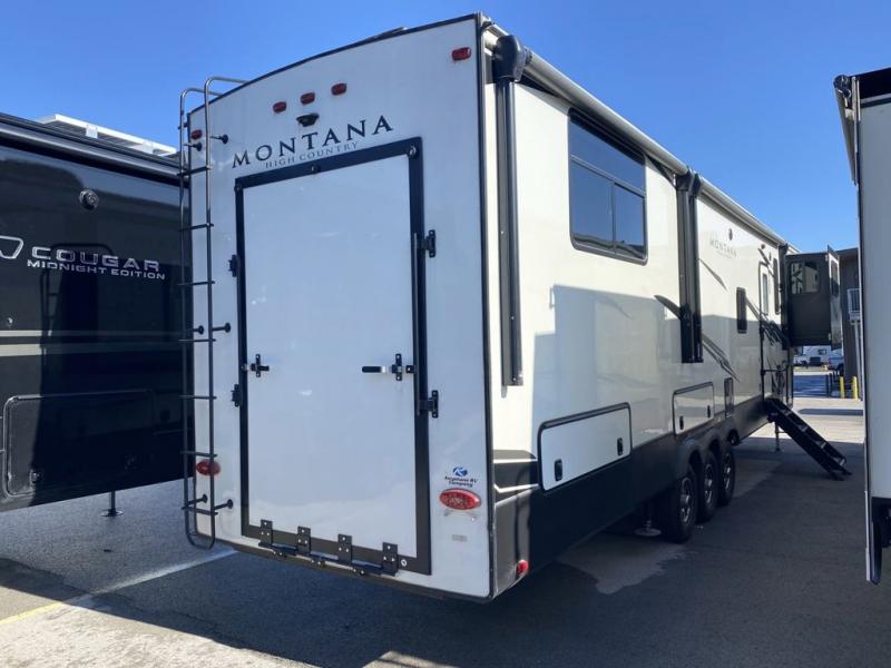 With each Montana High Country fifth wheel by Keystone you will enjoy family-friendly features, lightweight floorplans, and drop-frame construction for maximum storage. Each model is built for four season living with the heated and enclosed underbelly and the astrofoil insulated slide floors and underbelly. The Mystic Ash cabinetry, hardwood decorative slideout fascia, and accent crown molding create a luxurious fifth wheel everyone can get used to. These models include a Whisper Quiet A/C system to cool your space quietly and evenly, plus there is a 35,000 BTU furnace that will allow you to extend your camping season. The Montana High Country fifth wheels are equipped with a Road armor shock absorbing hitch pin for easy towing, and set-up will be a breeze with the Hitch Vision with LED lighting. There are many more features to love about these fifth wheels, like the MaxTurn front cap, the Solera series power awning(s), the residential appliances, and the list goes on!
