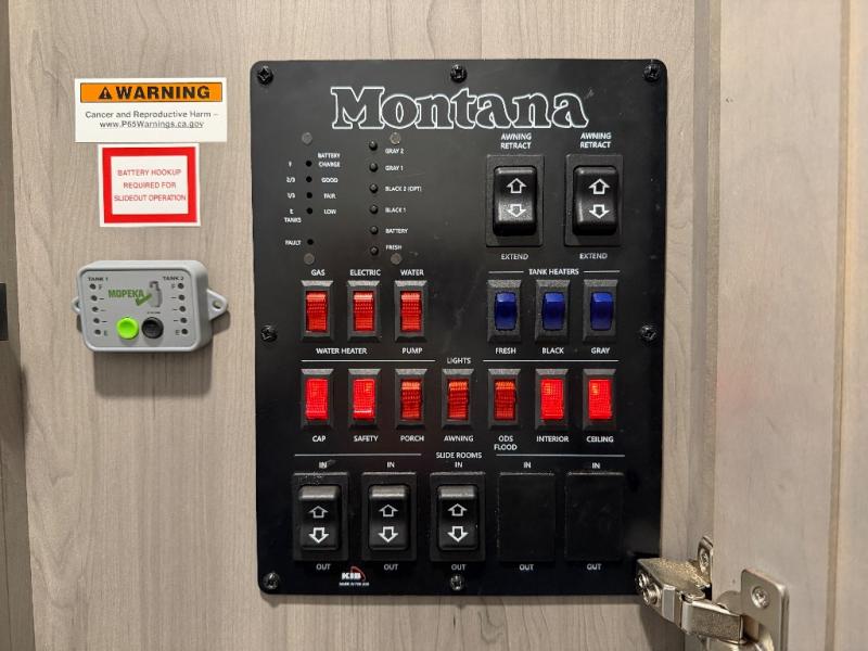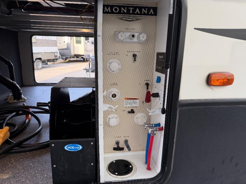 If you are an experienced RVer who is ready to gain more freedom on the road, then you need to check out the Keystone Montana fifth wheel! With exceptional craftsmanship, durable construction, dependable luxury, and cutting-edge technology, the Montana is truly a dream. The Montana has some easy set-up features, like an electric patio awning with LED lights, Hitch Vision with LED lighting, and MORryde Step Above entry steps with strut assist for an easy entrance. The Four Seasons Living Package allows you to camp year around with features such as, a heated and enclosed underbelly, a reflective foil insulated front cap, dual attic vents, and more! The Montana has you covered with convenient camping features, like the central vacuum, the stackable washer and dryer prep, and the Whisper Quiet Cool A/C's for an evenly and quietly cooled RV. Each model includes solid hardwood cabinet stiles, a 5K BTU decorative fireplace heater, a high-rise pull down faucet in the kitchen, plus many more interior comforts to make you feel right at home.