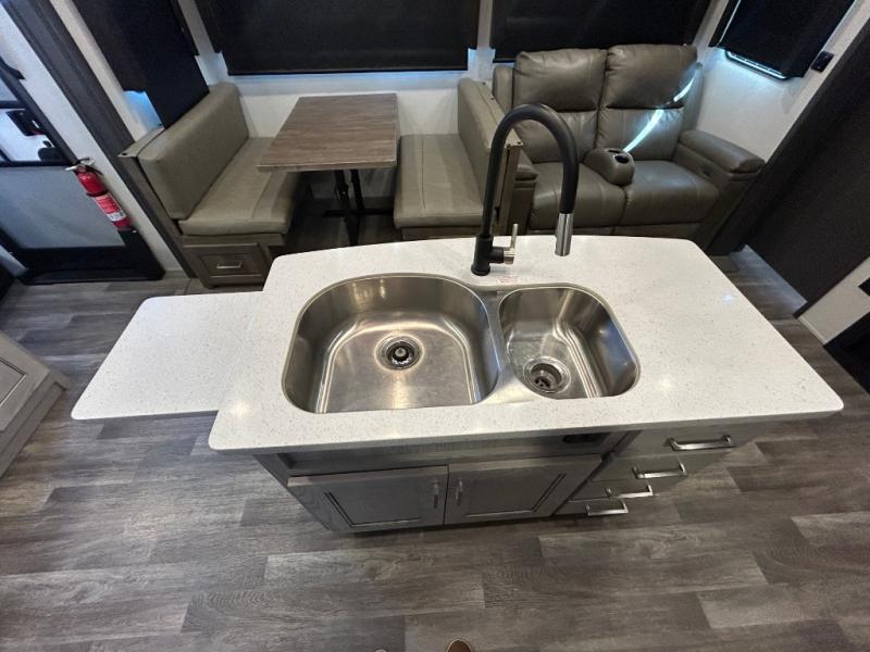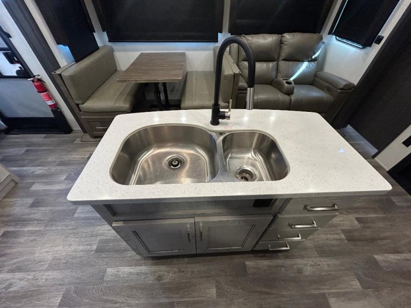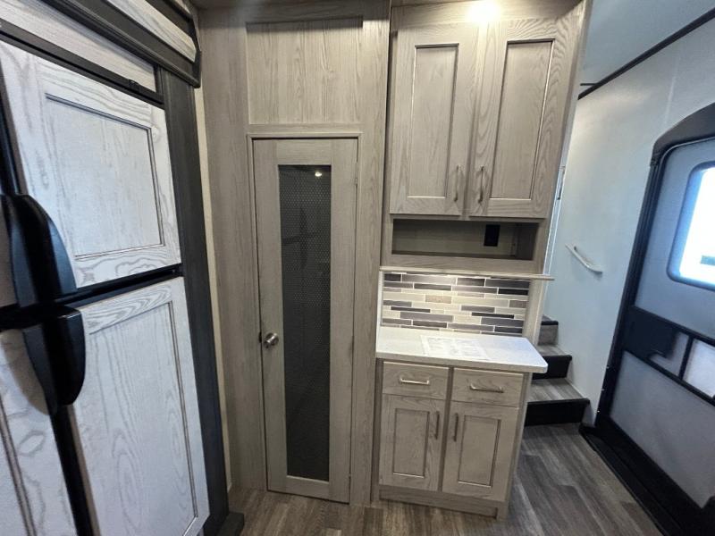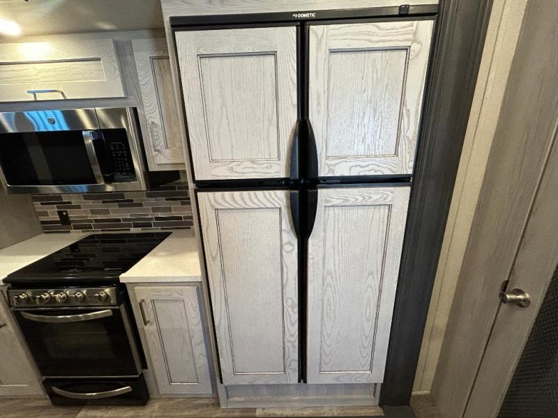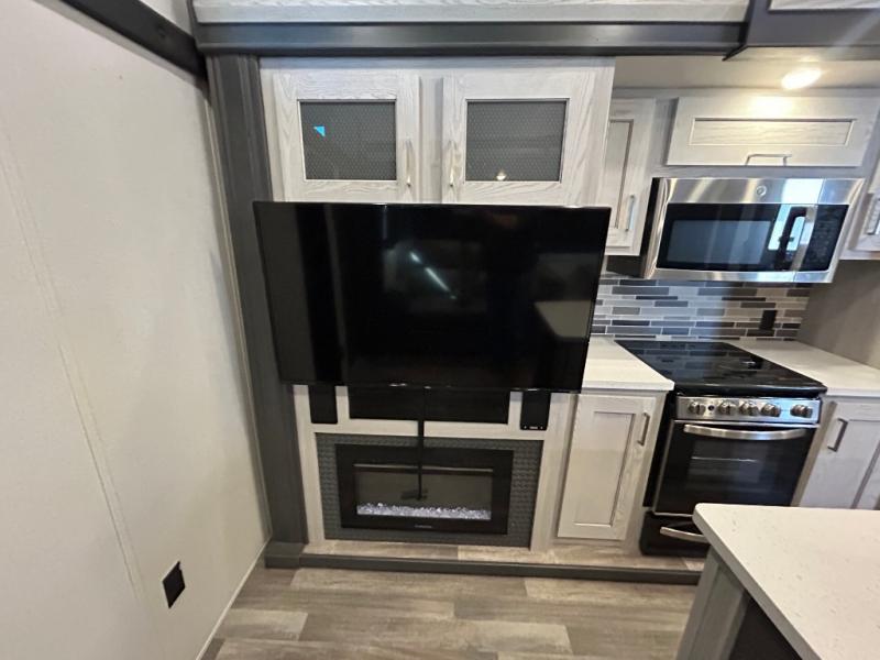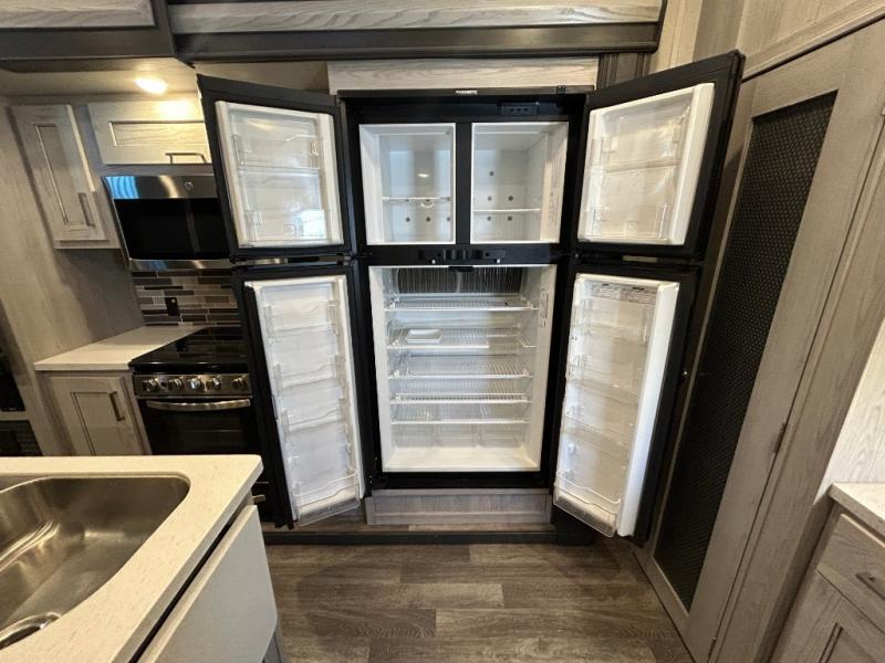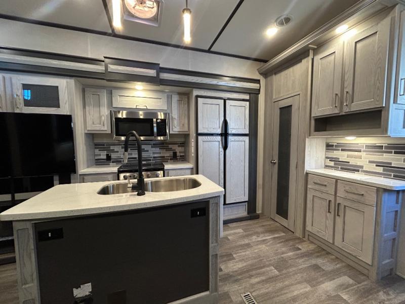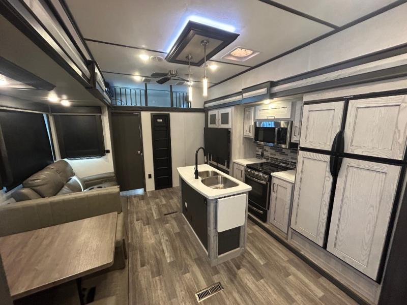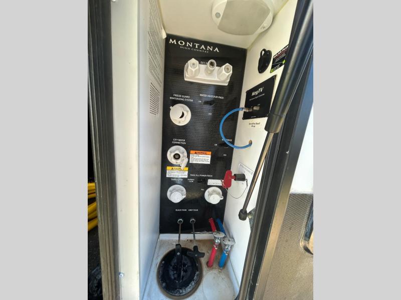 With each Montana High Country fifth wheel by Keystone you will enjoy family-friendly features, lightweight floorplans, and drop-frame construction for maximum storage. Each model is built for four season living with the heated and enclosed underbelly and the astrofoil insulated slide floors and underbelly. The Mystic Ash cabinetry, hardwood decorative slideout fascia, and accent crown molding create a luxurious fifth wheel everyone can get used to. These models include a Whisper Quiet A/C system to cool your space quietly and evenly, plus there is a 35,000 BTU furnace that will allow you to extend your camping season. The Montana High Country fifth wheels are equipped with a Road armor shock absorbing hitch pin for easy towing, and set-up will be a breeze with the Hitch Vision with LED lighting. There are many more features to love about these fifth wheels, like the MaxTurn front cap, the Solera series power awning(s), the residential appliances, and the list goes on!