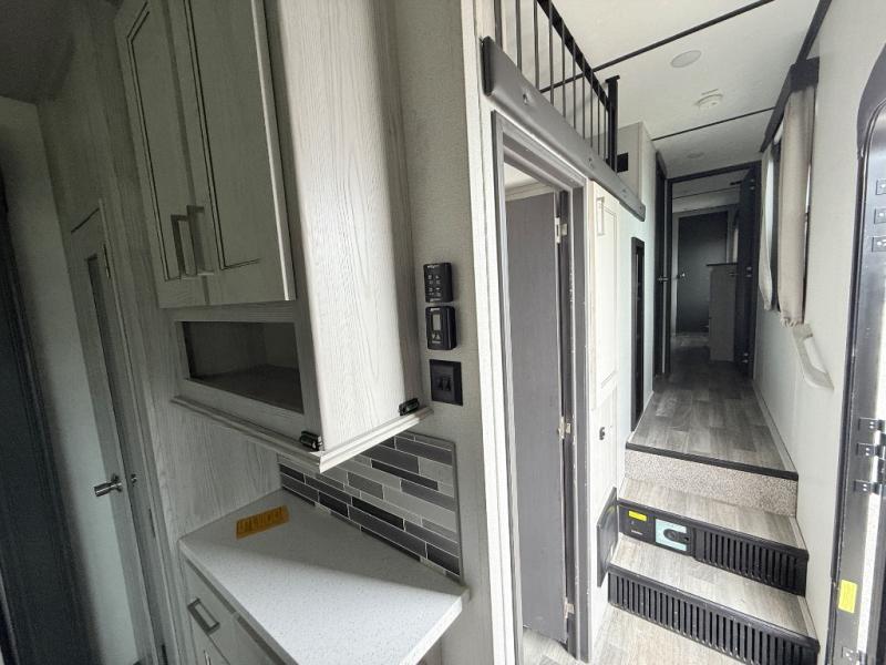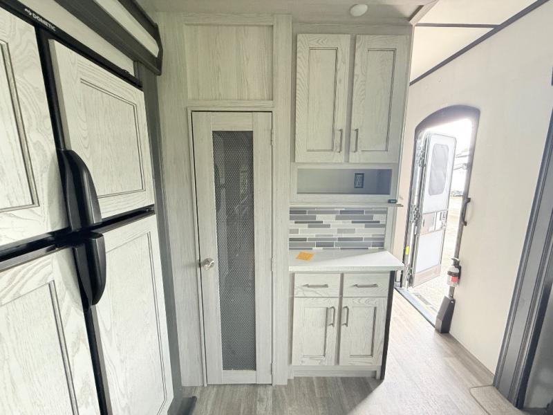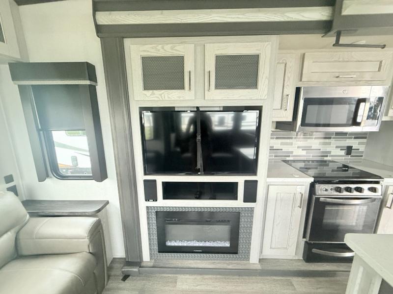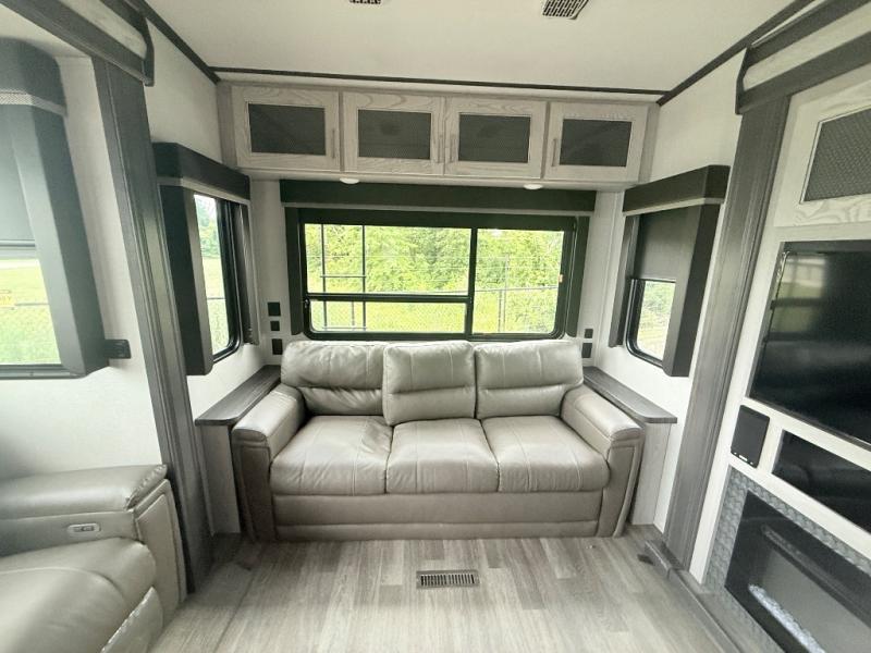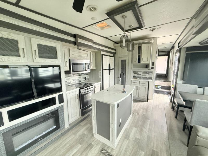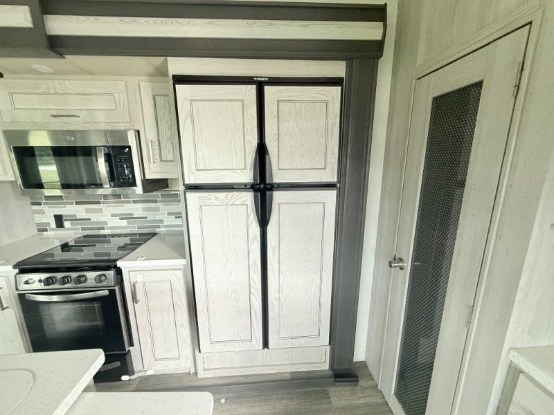 With each Montana High Country fifth wheel by Keystone you will enjoy family-friendly features, lightweight floorplans, and drop-frame construction for maximum storage. Each model is built for four season living with the heated and enclosed underbelly and the astrofoil insulated slide floors and underbelly. The Mystic Ash cabinetry, hardwood decorative slideout fascia, and accent crown molding create a luxurious fifth wheel everyone can get used to. These models include a Whisper Quiet A/C system to cool your space quietly and evenly, plus there is a 35,000 BTU furnace that will allow you to extend your camping season. The Montana High Country fifth wheels are equipped with a Road armor shock absorbing hitch pin for easy towing, and set-up will be a breeze with the Hitch Vision with LED lighting. There are many more features to love about these fifth wheels, like the MaxTurn front cap, the Solera series power awning(s), the residential appliances, and the list goes on!