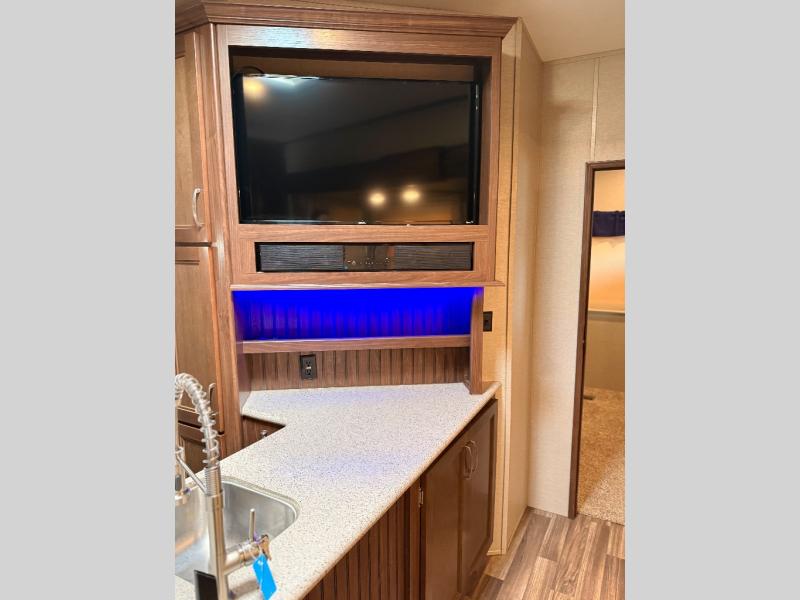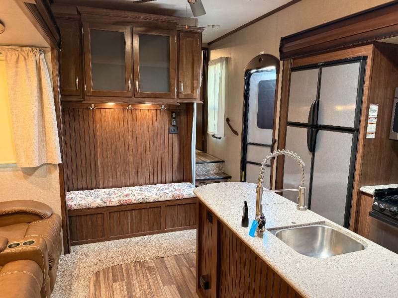 With each Montana High Country fifth wheel by Keystone you will enjoy family-friendly features, lightweight floorplans, and drop-frame construction for maximum storage. Each model is built for four season living with the heated and enclosed underbelly and the astrofoil insulated slide floors and underbelly. The Mystic Ash cabinetry, hardwood decorative slideout fascia, and accent crown molding create a luxurious fifth wheel everyone can get used to. These models include a Whisper Quiet A/C system to cool your space quietly and evenly, plus there is a 35,000 BTU furnace that will allow you to extend your camping season. The Montana High Country fifth wheels are equipped with a Road armor shock absorbing hitch pin for easy towing, and set-up will be a breeze with the Hitch Vision with LED lighting. There are many more features to love about these fifth wheels, like the MaxTurn front cap, the Solera series power awning(s), the residential appliances, and the list goes on!