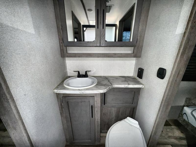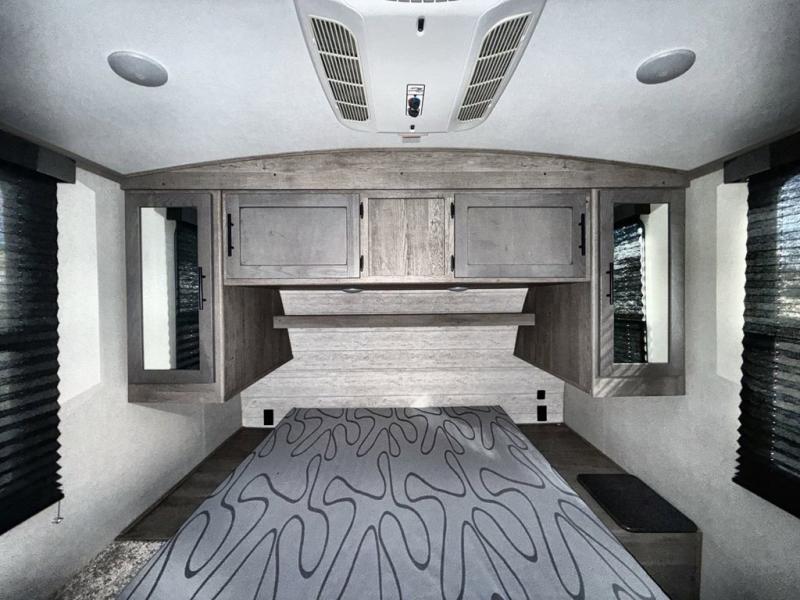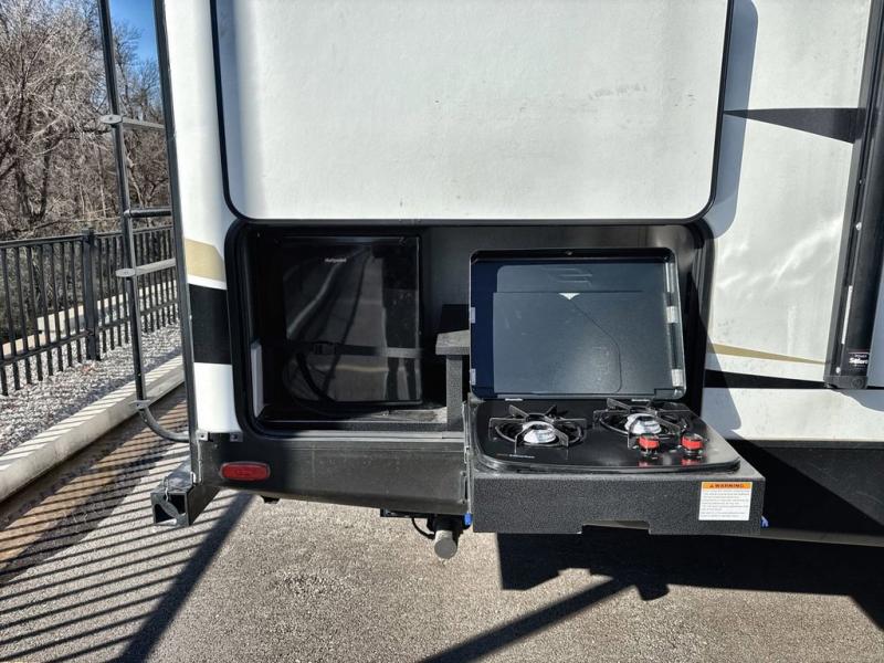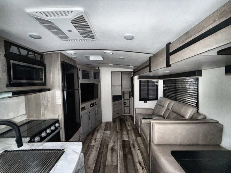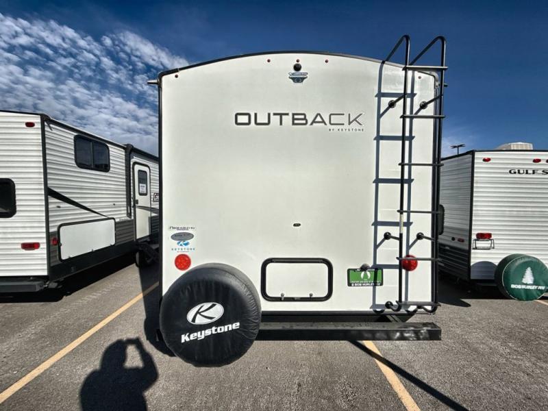 With any Keystone Outback Ultra Lite travel trailer or toy hauler, you will enjoy a beautiful interior that is outfitted with modern style. Some models feature interior sliding barn doors, and all models have extra-tall slide height for more head space. You can extend your camping season thanks to the one-piece polypropylene heated, enclosed underbelly, the 15K BTU A/C with true Race Track ducting, and the upgraded 10-cubic foot 12V gas/electric refrigerator. Some other notable features are the fully walkable 3/8" roof decking and one-piece TPO membrane, the HyperDeck flooring, and the outside shower. These are just a few of the reasons you will want to own an Outback Ultra Lite to explore the outdoors!