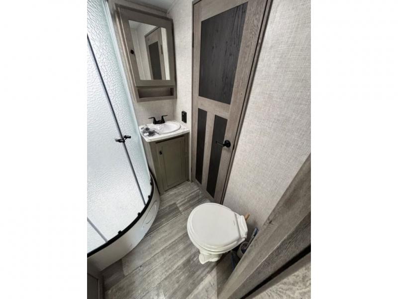 With any Keystone Outback travel trailer and toy hauler you will enjoy a lighter wallboard and white countertops for the modern farmhouse feel with more refined flooring, furniture, and cabinet hardware. You can extend your camping season thanks to the Astro-foil barrier added to the fully enclosed underbelly with ducted heat, the Coleman-Mach Quiet Series A/C offering a significant reduction of in-cabin sound levels, and an upgraded 10 cu. ft. 12V GE refrigerator to mention a few notables. The Lippert Step Above entry steps, the water docking station, the rear ladder, and the HyperDeck high performance, water-resistant RV floor are a few more reasons you will want to own an Outback for years to come!