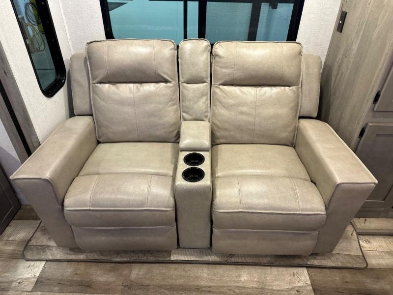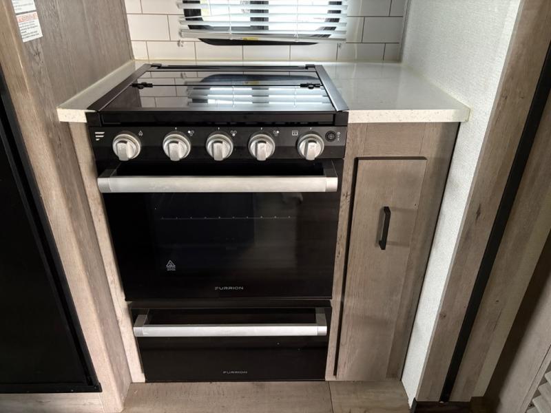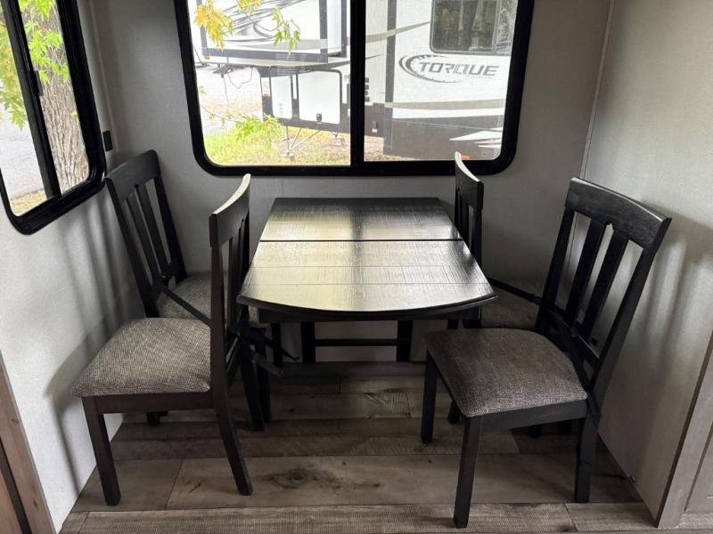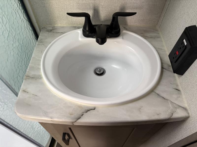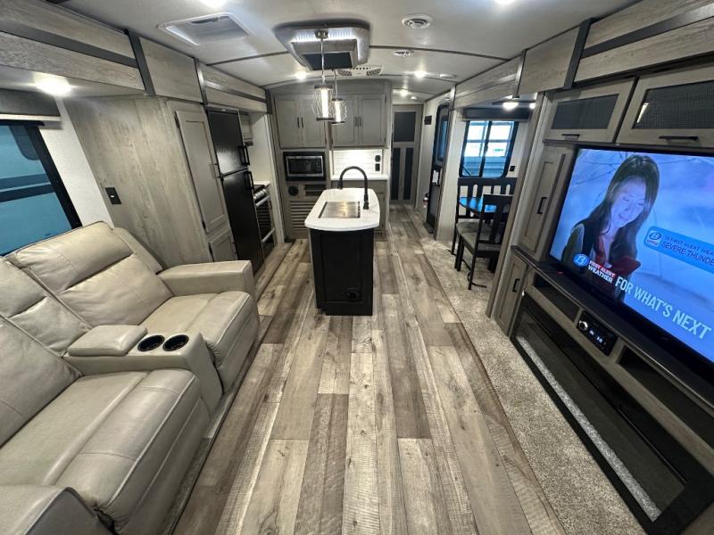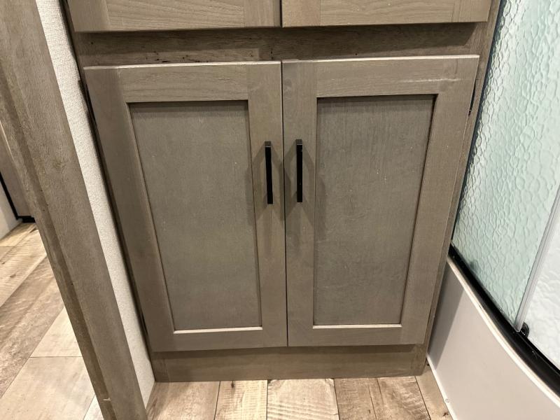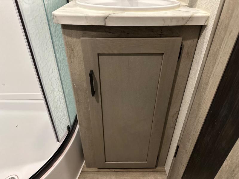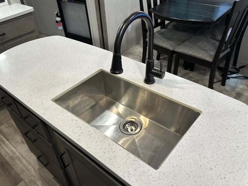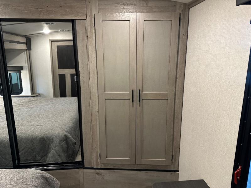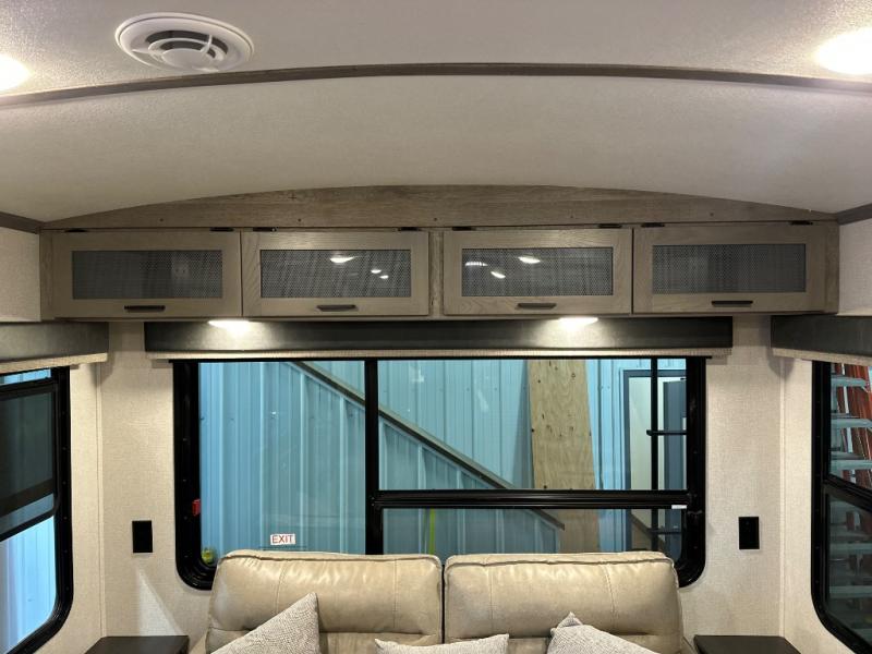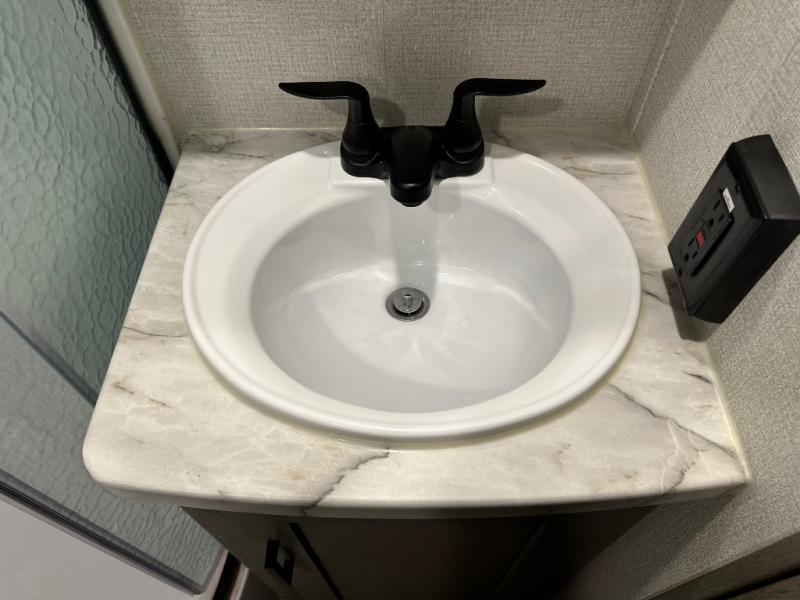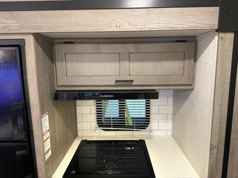 With any Keystone Outback travel trailer and toy hauler you will enjoy a lighter wallboard and white countertops for the modern farmhouse feel with more refined flooring, furniture, and cabinet hardware. You can extend your camping season thanks to the Astro-foil barrier added to the fully enclosed underbelly with ducted heat, the Coleman-Mach Quiet Series A/C offering a significant reduction of in-cabin sound levels, and an upgraded 10 cu. ft. 12V GE refrigerator to mention a few notables. The Lippert Step Above entry steps, the water docking station, the rear ladder, and the HyperDeck high performance, water-resistant RV floor are a few more reasons you will want to own an Outback for years to come!