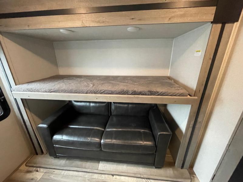 Let this Outback travel trailer be your family's new favorite vacation destination! Whether it is in the rear private bunkhouse or in the front private bedroom, you will find plenty of space to sleep nine to ten people throughout this trailer, and because this unit comes with a built-in kennel, you will also have plenty of space for your pet to feel comfortable while you travel. With the three slides that have been included in this model, you will be able to rest easily in the central living area on the sofa sleeper or booth dinette while you charge your computer or cell phone at the power station. The cook will love having the choice of cooking indoors or outdoors, and you will have the choice of adding an option or two such as a different size refrigerator, theater seating in place of the sofa, and there is more.