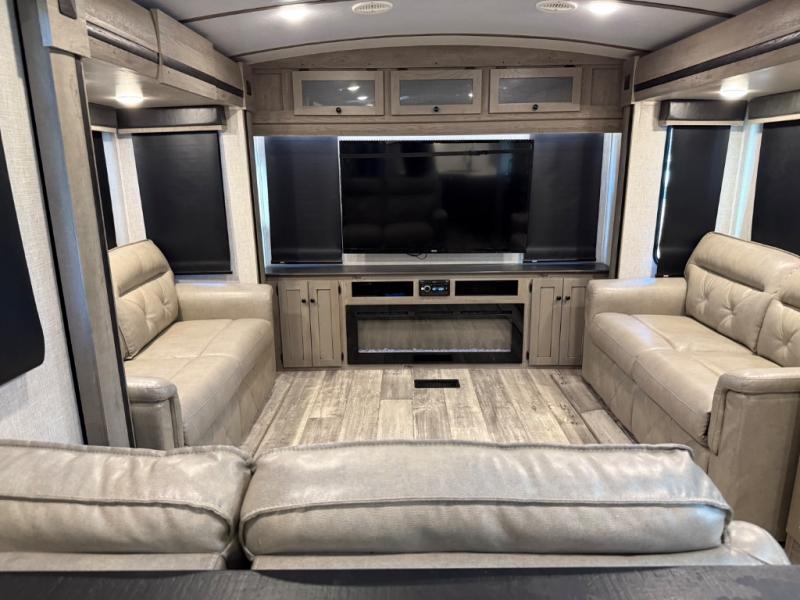 If you are ready to experience nature at its finest with comfort just steps away, then you need this Outback travel trailer! You will find it easy to spend your evenings relaxing in the separate rear living area because of the two sofa sleepers, the theater seating, plus the entertainment center with a 55" TV to watch and a 48" fireplace. The middle kitchen offers everything the cook will need to keep two or more fed including a wine rack and a pantry. You can eat your meals at the dinette with bench seating or outside under the 21' awning. When you are ready to turn in for the night, you will look forward to sleeping on the king-size bed slide out in the private master suite while your pet sleeps soundly in the built-in kennel. You will find plenty of storage for your clothing and you can add a washer/dryer option if you wish.