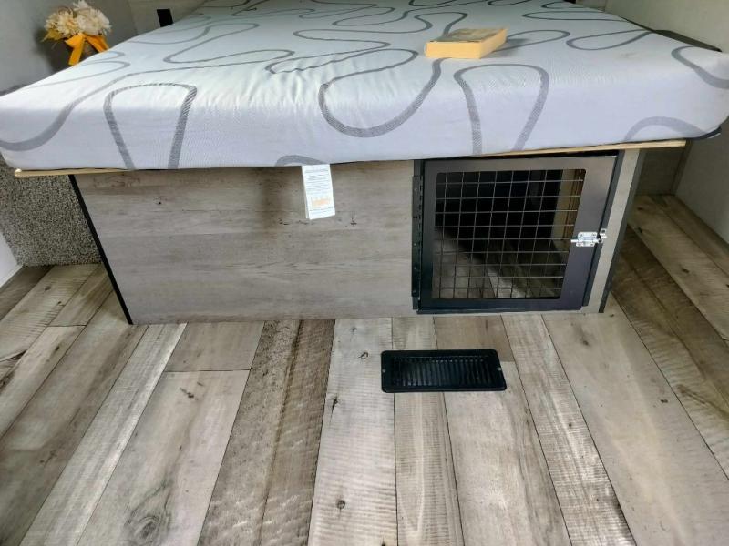 With the large slide that has been included in this Outback Ultra Lite travel trailer, you will have plenty of space to live comfortably! The queen bed in the front semi-private bedroom will be your favorite spot to cozy up each night, and the built-in pet kennel will ensure that your little puppy will sleep well too. As you prepare meals each day in the full kitchen, you will appreciate how easy it will be to keep the area tidy with the pull-out trash can, and the 10-cubic foot refrigerator will give you plenty of space to store your milk, yogurt, and other perishables.