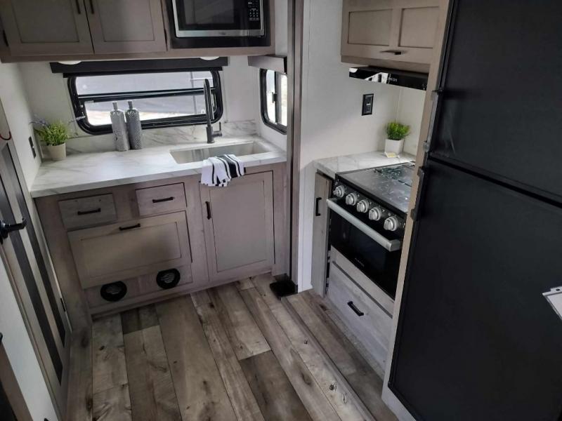 With any Keystone Outback Ultra Lite travel trailer or toy hauler, you will enjoy a beautiful interior that is outfitted with modern style. Some models feature interior sliding barn doors, and all models have extra-tall slide height for more head space. You can extend your camping season thanks to the one-piece polypropylene heated, enclosed underbelly, the 15K BTU A/C with true Race Track ducting, and the upgraded 10-cubic foot 12V gas/electric refrigerator. Some other notable features are the fully walkable 3/8" roof decking and one-piece TPO membrane, the HyperDeck flooring, and the outside shower. These are just a few of the reasons you will want to own an Outback Ultra Lite to explore the outdoors!