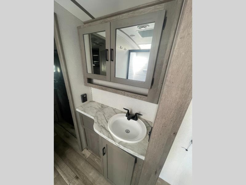 With any Keystone Outback Ultra Lite travel trailer or toy hauler, you will enjoy a beautiful interior that is outfitted with modern style. Some models feature interior sliding barn doors, and all models have extra-tall slide height for more head space. You can extend your camping season thanks to the one-piece polypropylene heated, enclosed underbelly, the 15K BTU A/C with true Race Track ducting, and the upgraded 10-cubic foot 12V gas/electric refrigerator. Some other notable features are the fully walkable 3/8" roof decking and one-piece TPO membrane, the HyperDeck flooring, and the outside shower. These are just a few of the reasons you will want to own an Outback Ultra Lite to explore the outdoors!