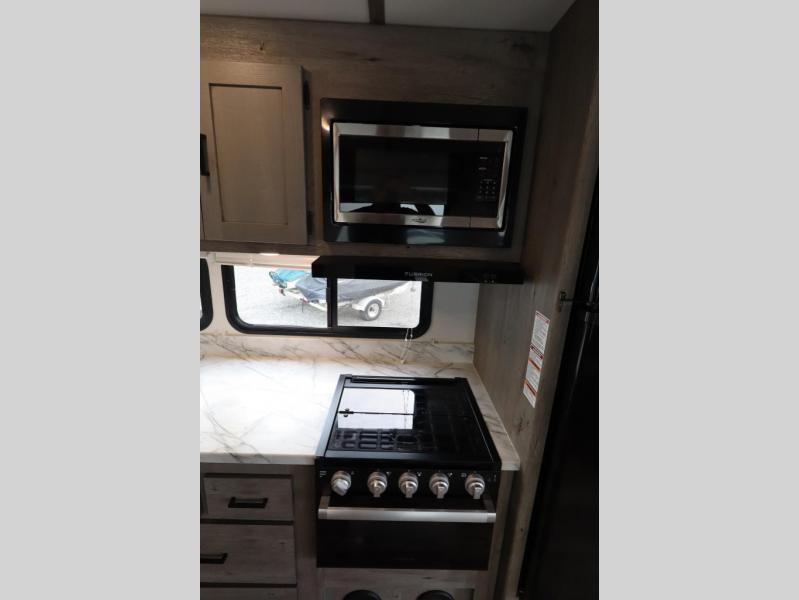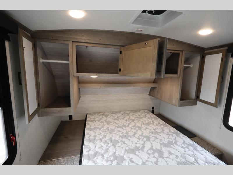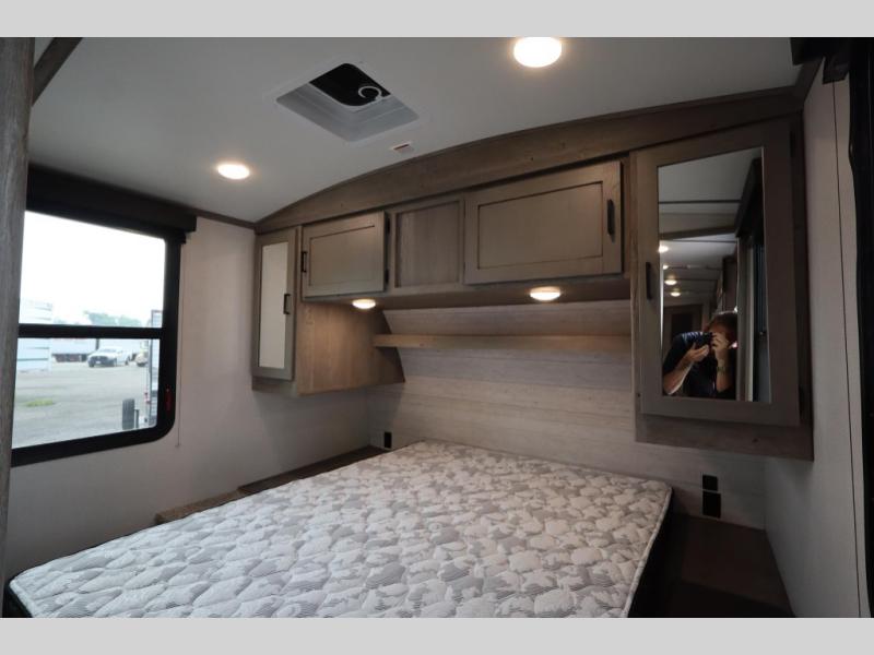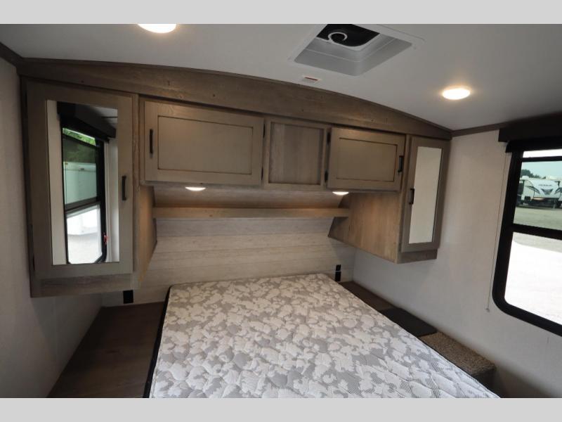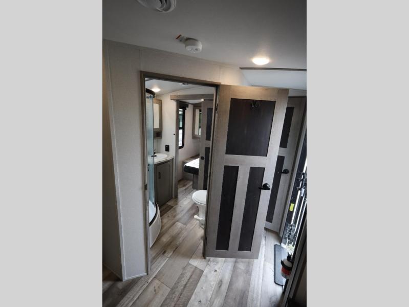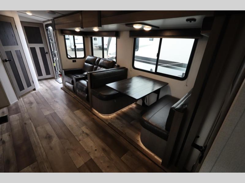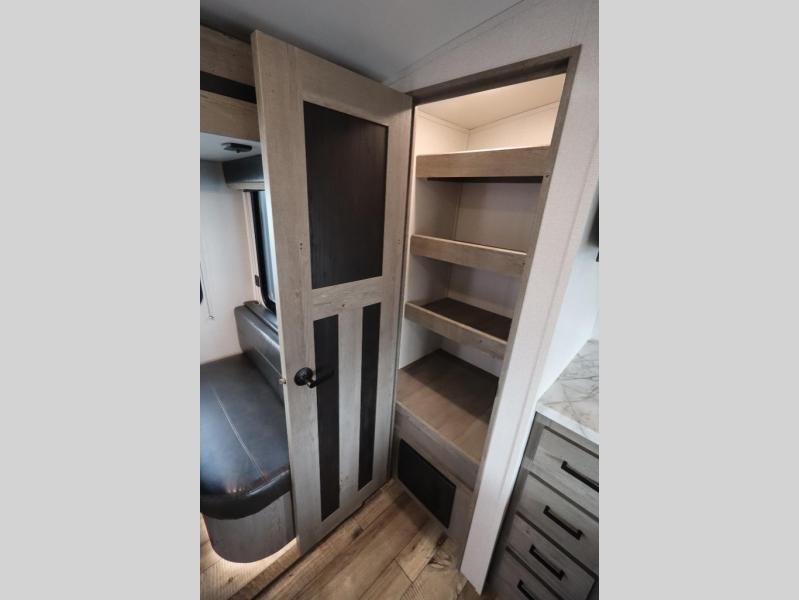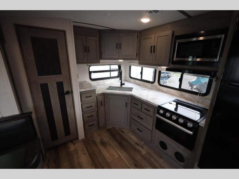 With any Keystone Outback Ultra Lite travel trailer or toy hauler, you will enjoy a beautiful interior that is outfitted with modern style. Some models feature interior sliding barn doors, and all models have extra-tall slide height for more head space. You can extend your camping season thanks to the one-piece polypropylene heated, enclosed underbelly, the 15K BTU A/C with true Race Track ducting, and the upgraded 10-cubic foot 12V gas/electric refrigerator. Some other notable features are the fully walkable 3/8" roof decking and one-piece TPO membrane, the HyperDeck flooring, and the outside shower. These are just a few of the reasons you will want to own an Outback Ultra Lite to explore the outdoors!