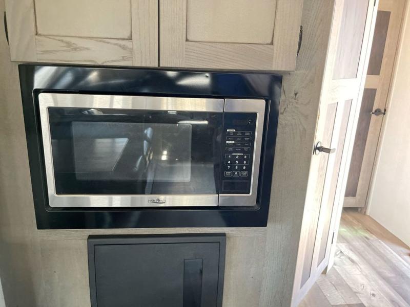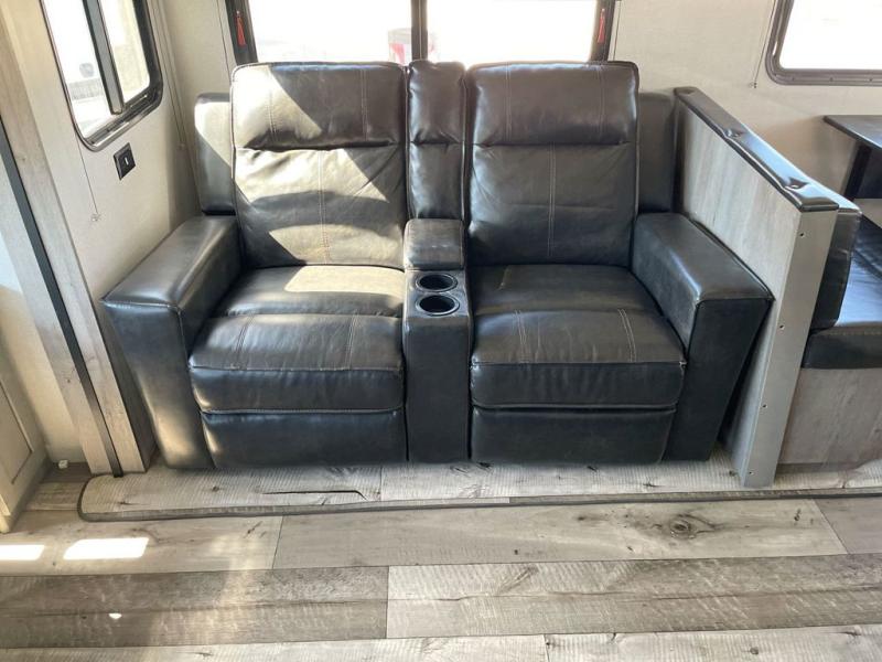 Whether you like to camp at a state park or RV resort, this Outback Ultra Lite trailer will provide inside comforts to relax and unwind after hiking or working all week. You can choose to sit on the theater seats, the sofa sleeper, or the booth dinette and watch the 50" TV. You can also relax outdoors protected from the elements under the 21' awning. The cook will love having the kitchen island to prepare and serve meals, and they will also love all of the appliances as well as the curio and pull-out trash can. The double-entry bath is convenient for all, and the private front bedroom will allow you to get a good night's sleep on your own queen bed. Your family pet will also have their own space with the built-in kennel.